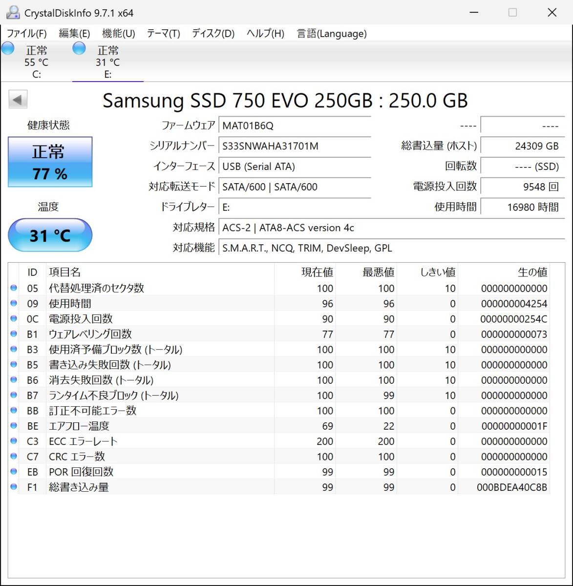 動作品 SAMSUNG SSD 750 EVO 250GB サムスン 送料込み