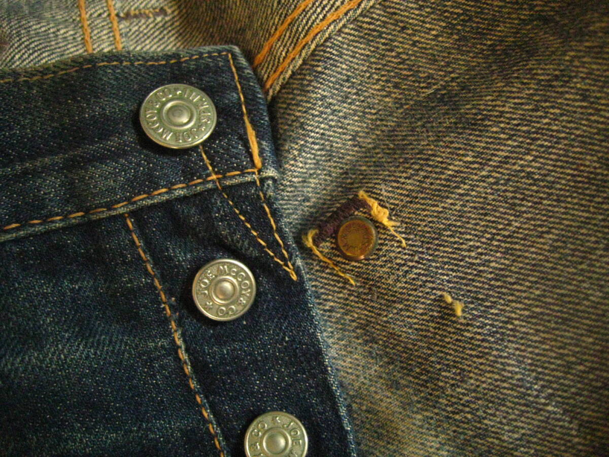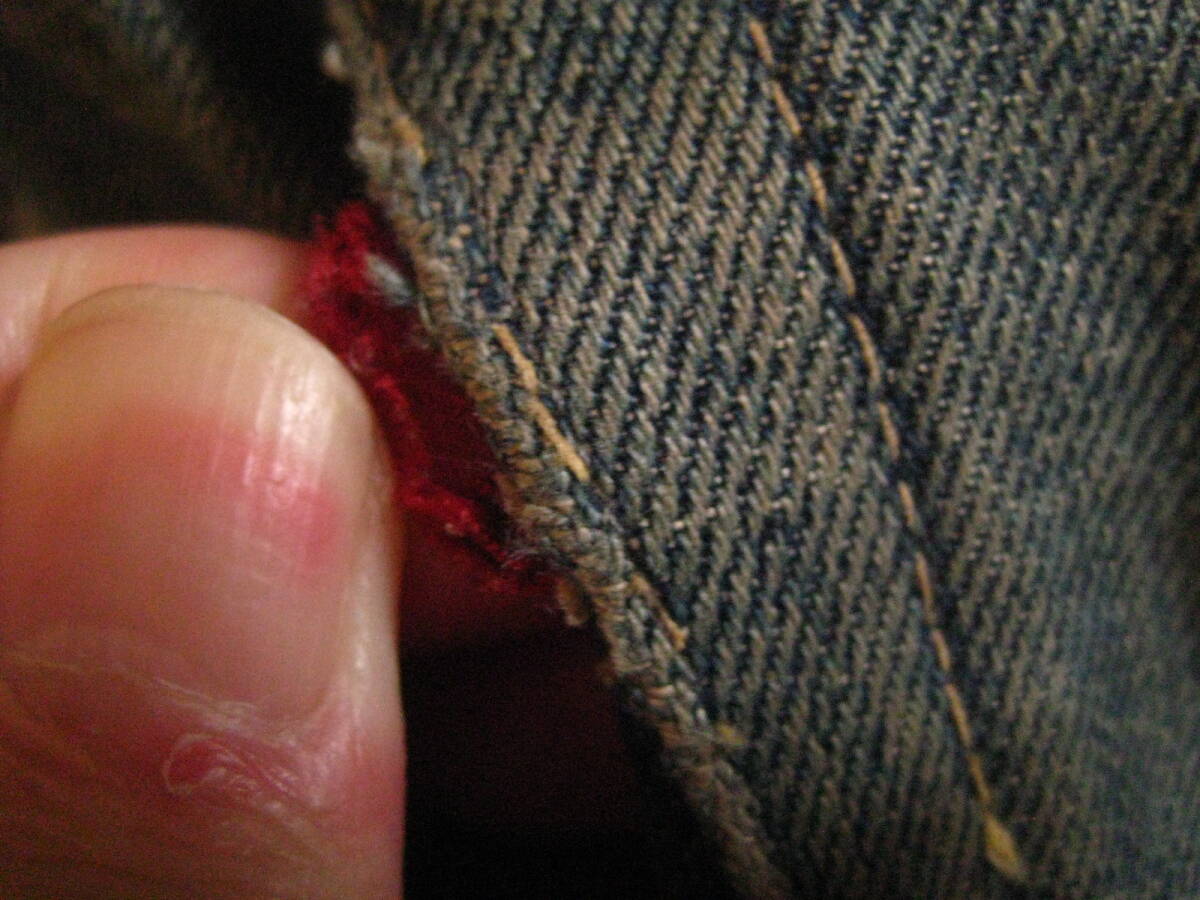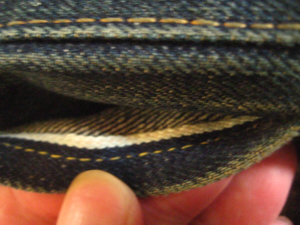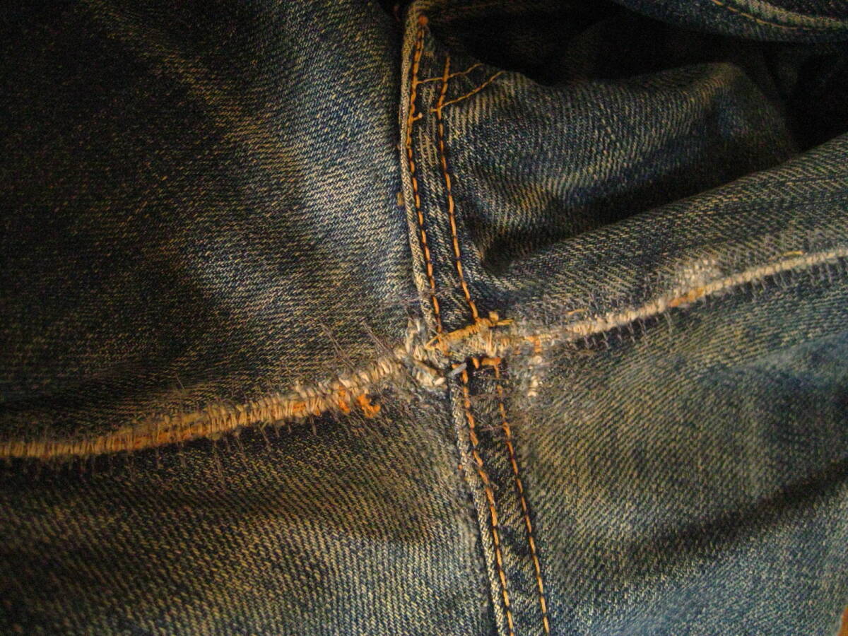 。○●サイズ表記●○。 W29L34 ボタンフライ 。○●平置きで実寸サイズ●○。 ウエスト約79㎝、レングス約73.5㎝、裾幅約21.5㎝ 太もも幅約31.5cm、股上前約26㎝、総丈約100㎝ ●程よい色感になります 。 ●革パッチ・赤タブ・隠しリベット・ウエストバンドとバックポケットの縁はシングルステッチ・Vステッチ・各セルビッジ・裾はチェーンステッチ(ホツレ有)などなど。 ●極上の風格、しっかりとしたメリハリ感、ヒゲ・アタリ・タテ落ち感もこれから楽しめる1本になります。 ●実にカッコいいパンツになっております。激安で出品いたしますのでぜひこの機会にどうですか!!!