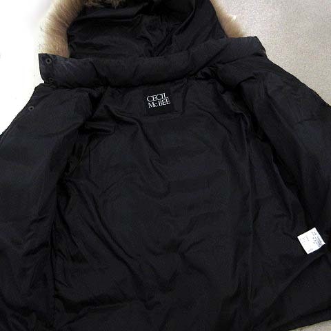 セシルマクビー CECIL McBEE ダウンジャケット ラクーン ファー フード ジップアップ 長袖 M 黒 ブラック ベージュ レディース