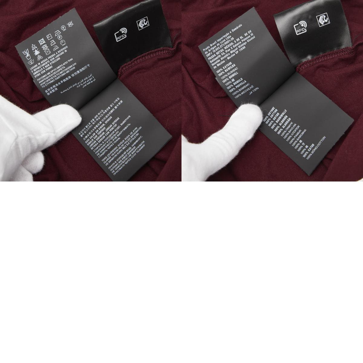 プラダ 25SS 三角ロゴ 半袖Tシャツ サイズ:S UJN912 ボルドー ワインレッド ホワイト コットン メンズ PRADA 【中古】