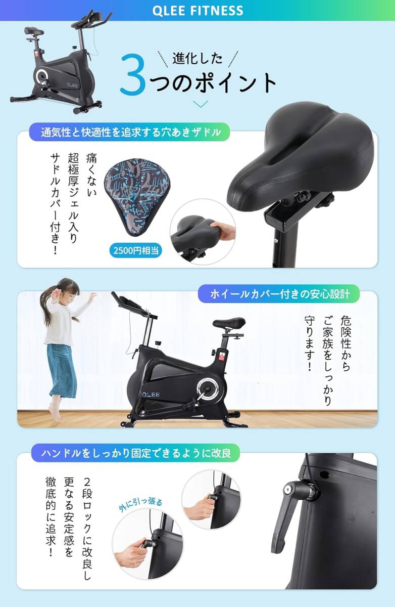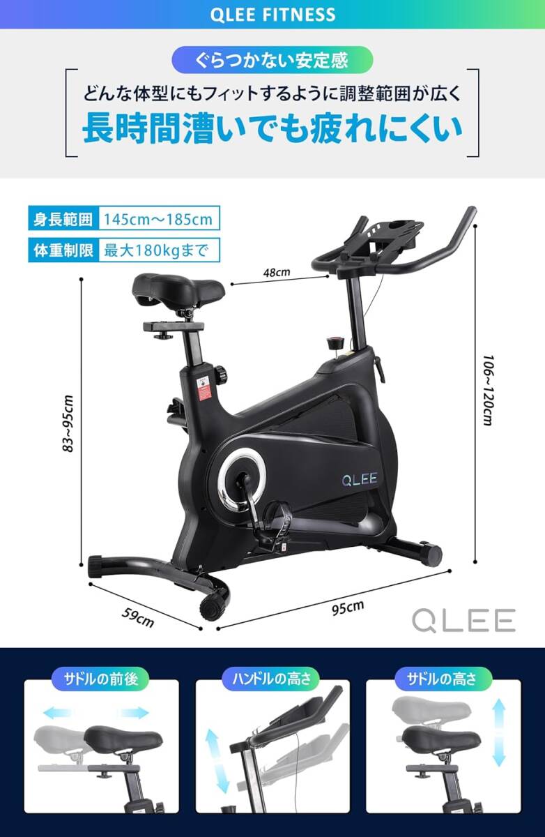 ブラック色 QLEE 第7世代フィットネスバイク 【ZWIFT アプリ連動】 スピンバイク エアロバイク 家庭用 極静音 室内自転車