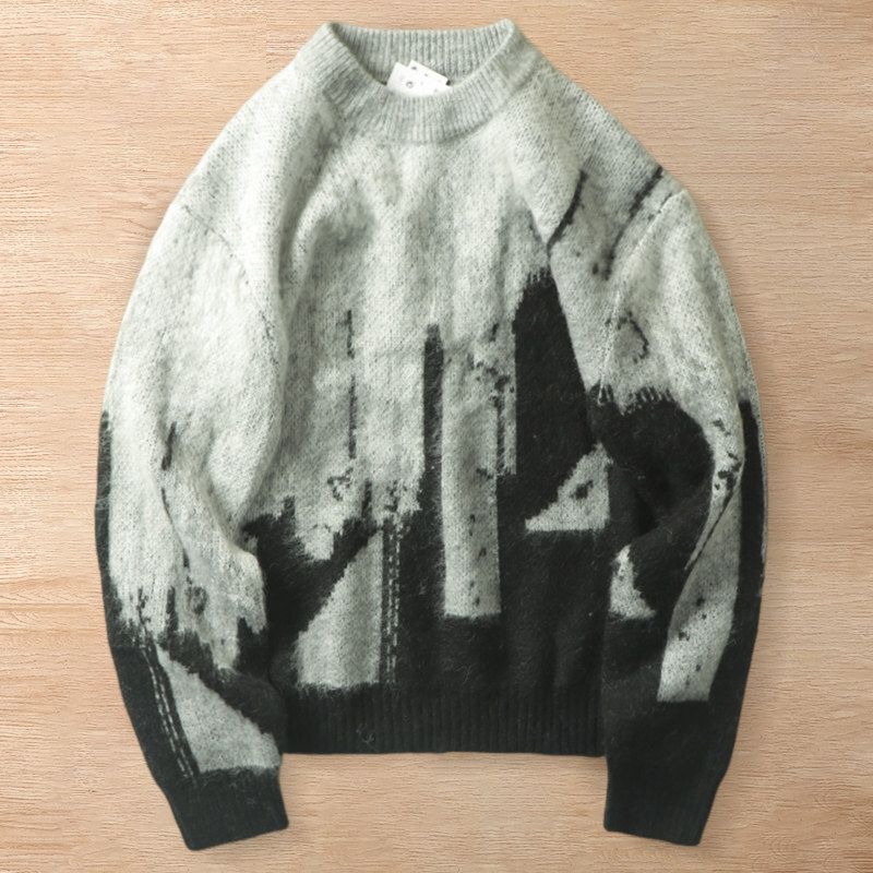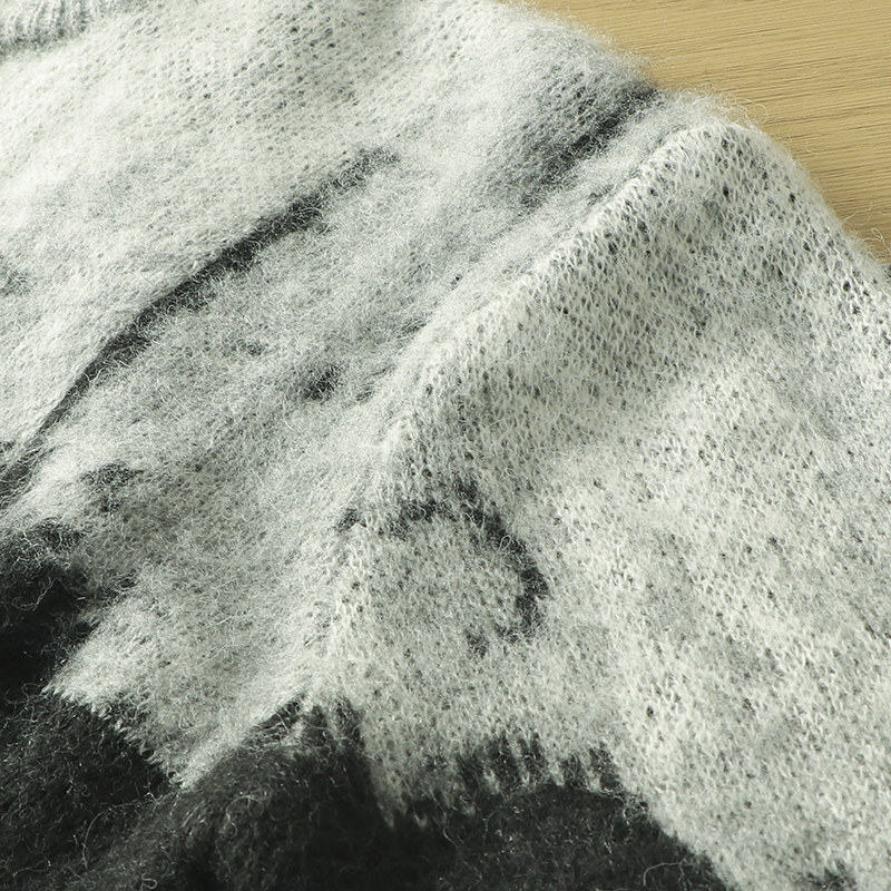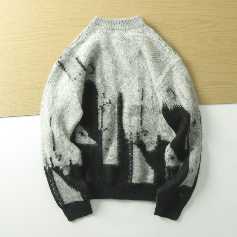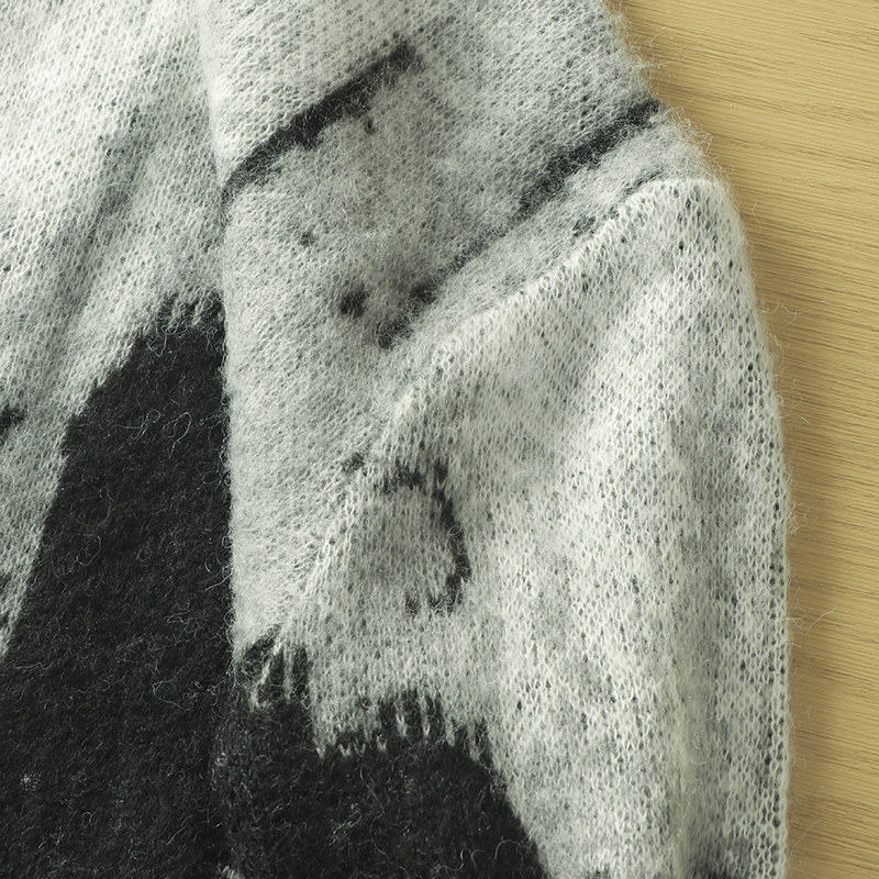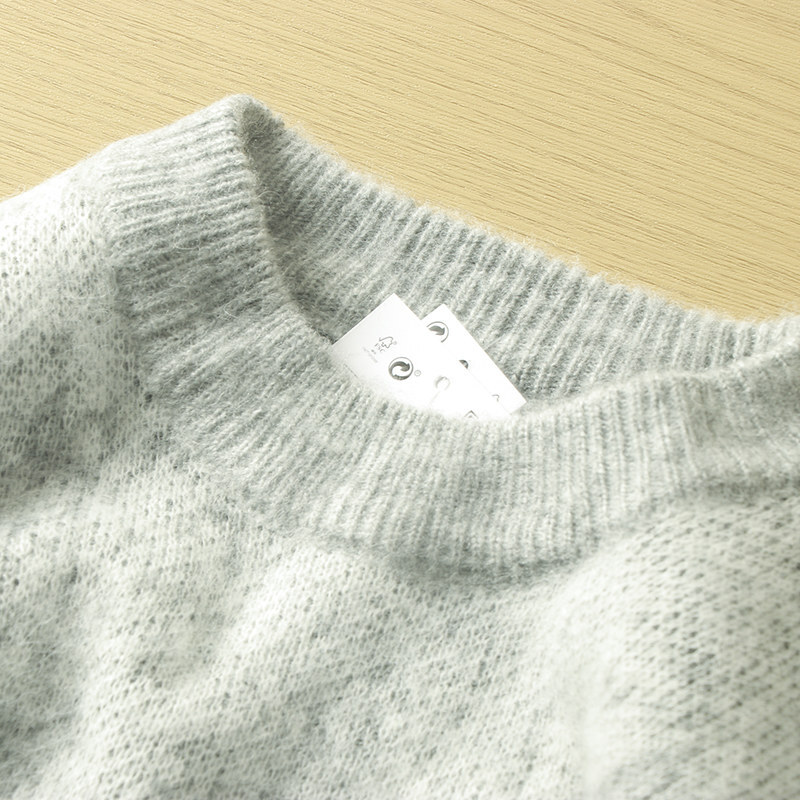 Y6367-XL グレー 新品 ウール混 モヘア プルオーバーニット クルーネック 柔らか 暖かさ 着心地良い 秋冬 セーター メンズ トップス