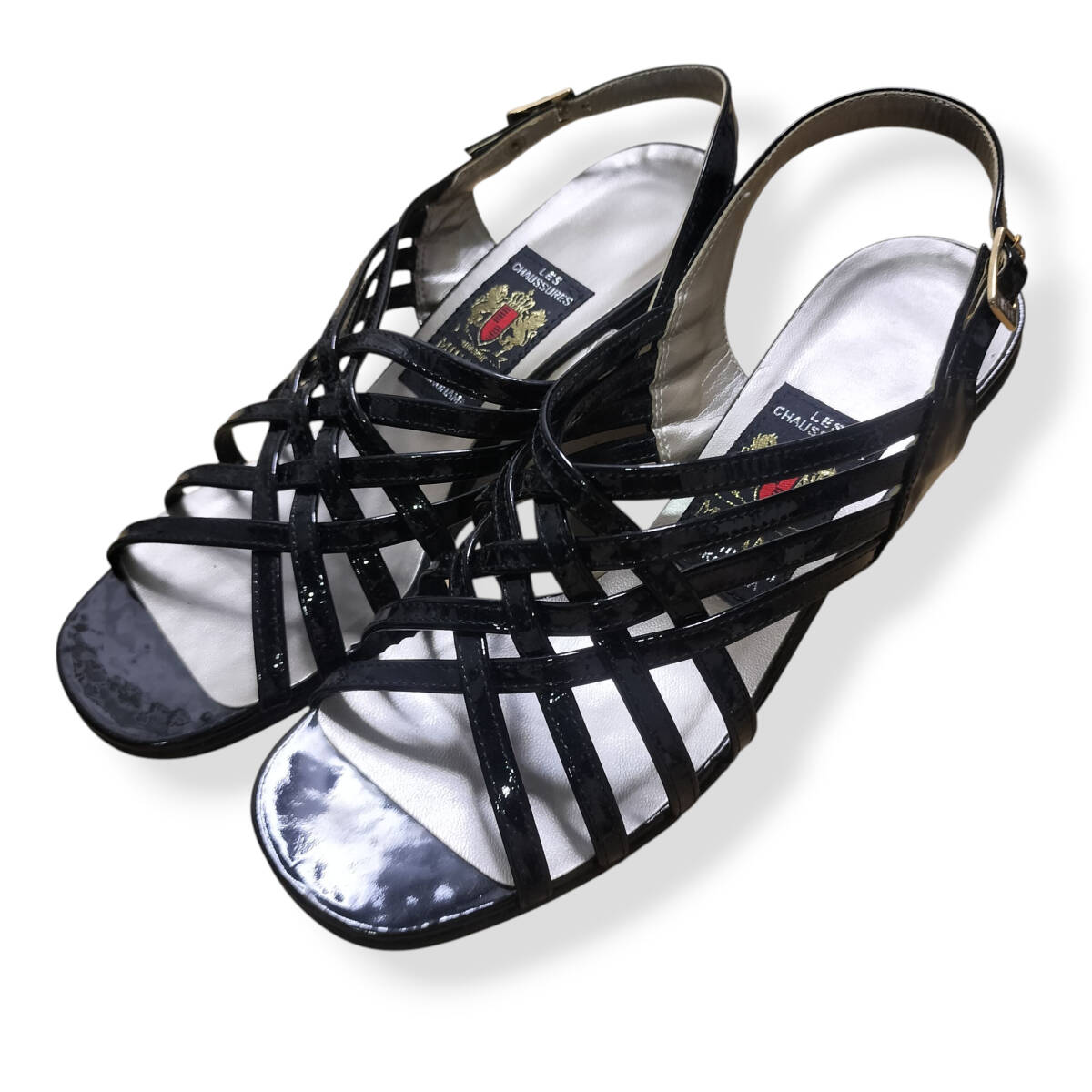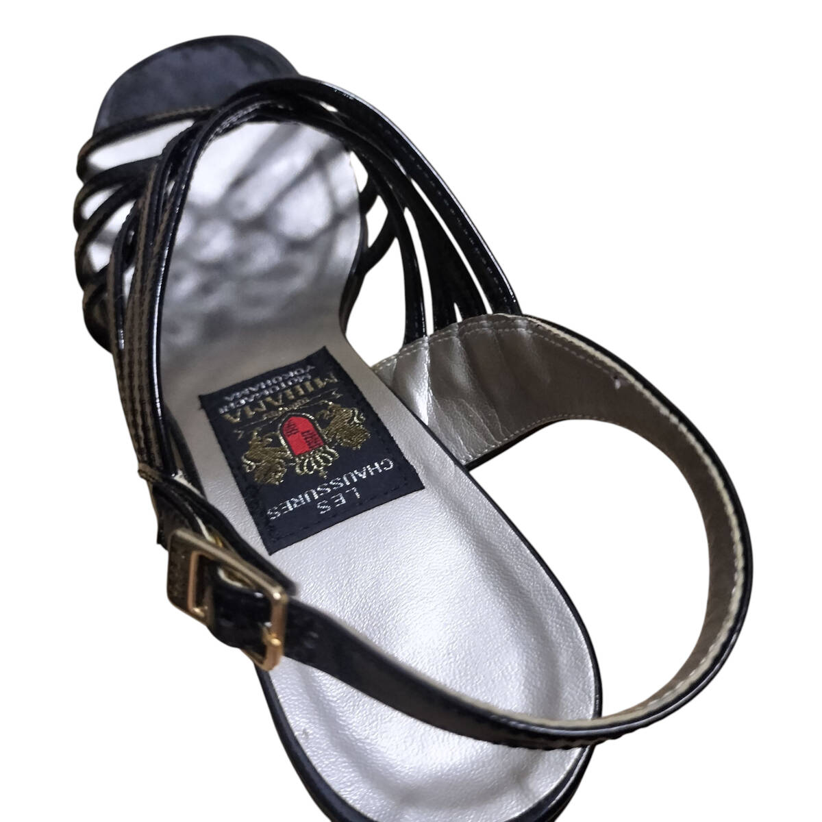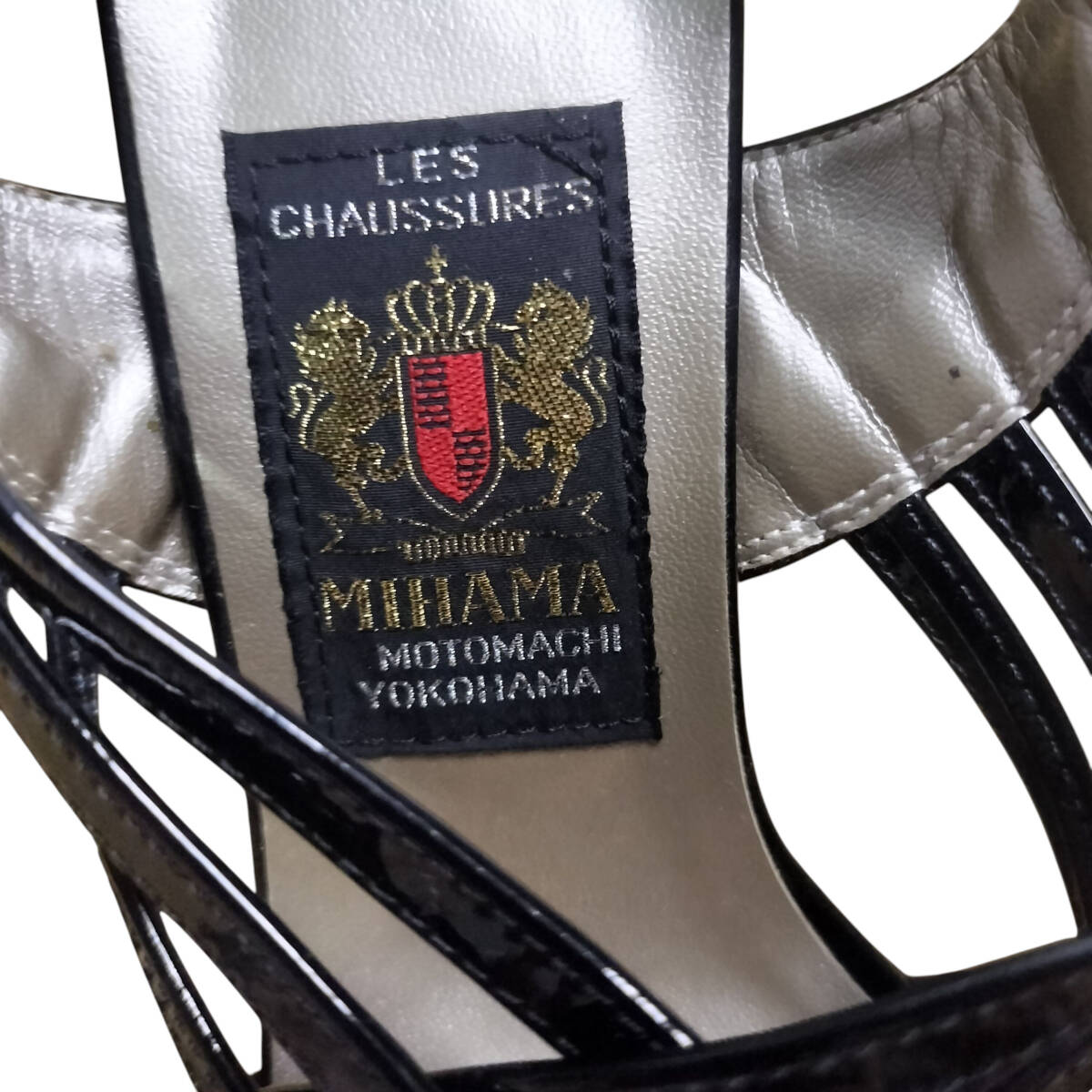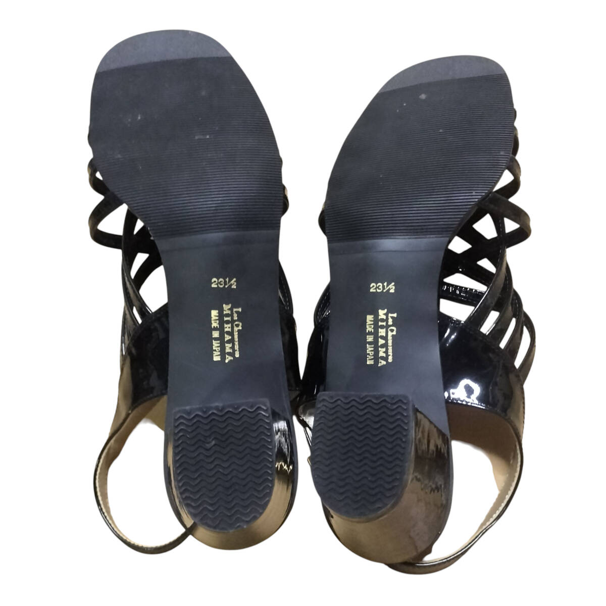 【美品】MIHAMA ミハマ サンダル ストラップ エナメル ブラック 23.5㎝ ヒール