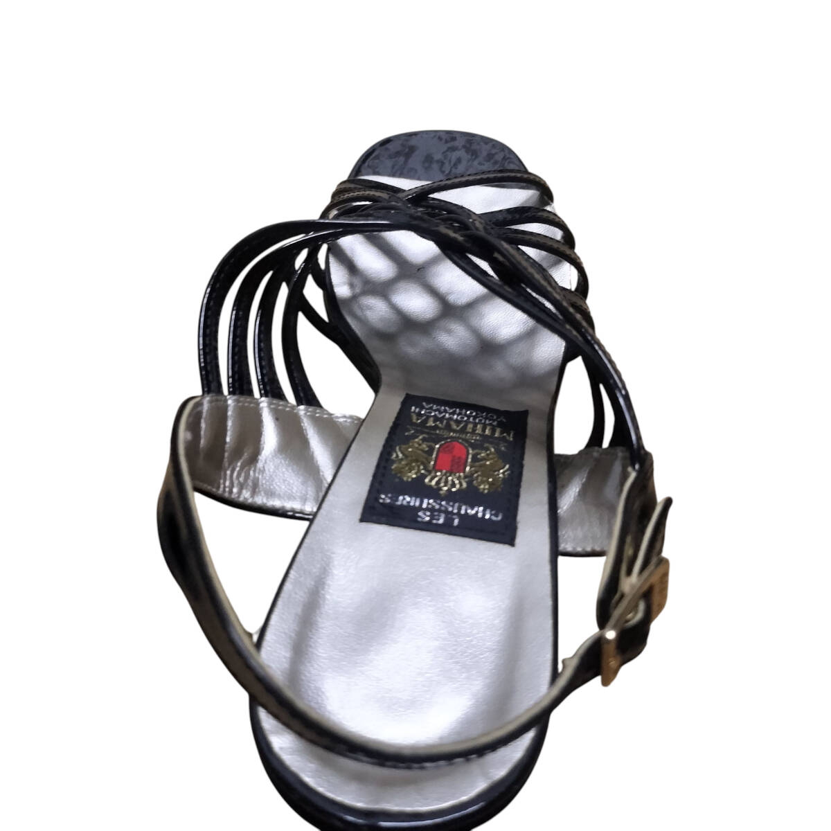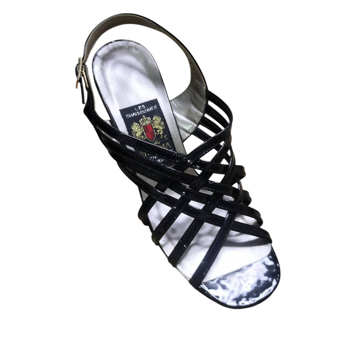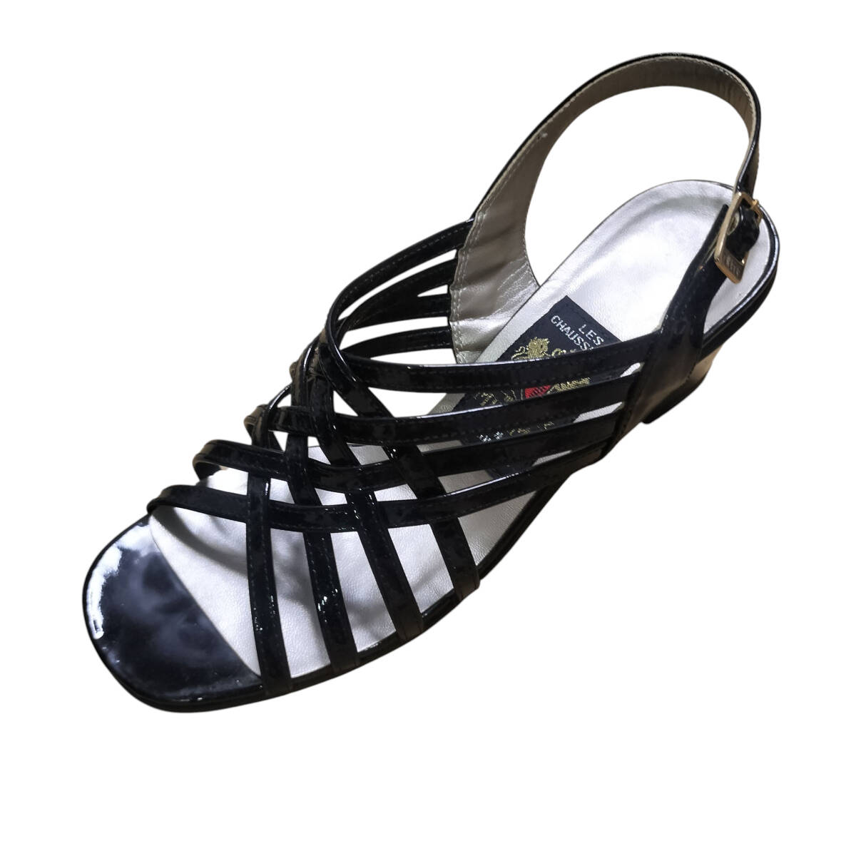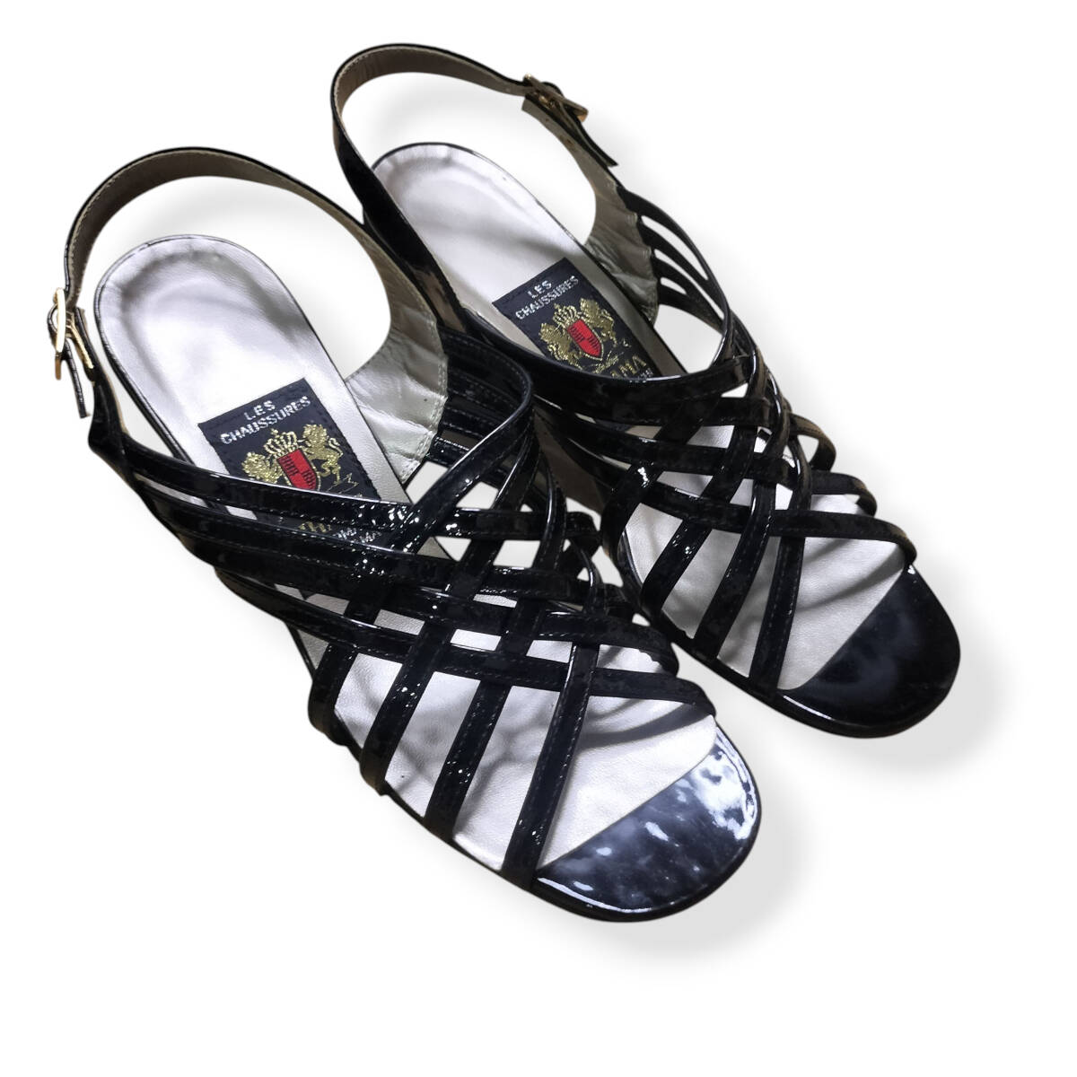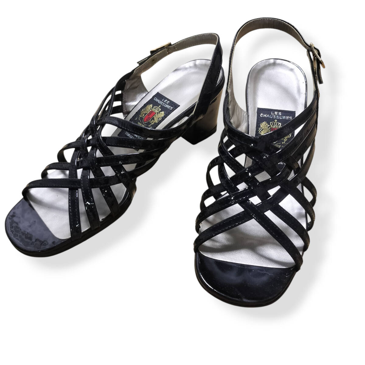 【美品】MIHAMA ミハマ サンダル ストラップ エナメル ブラック 23.5㎝ ヒール