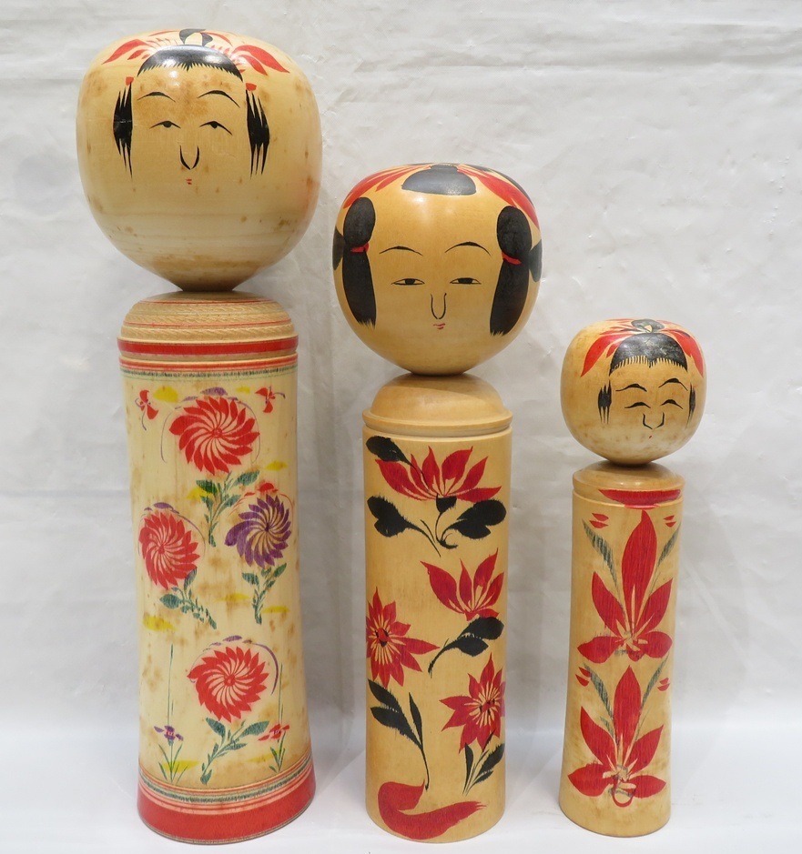 桜井昭二 こけし 3体セット 鳴子 伝統 郷土玩具 在銘 伝統工芸品 木工 置き物 お土産 民芸品 日本人形 インテリア