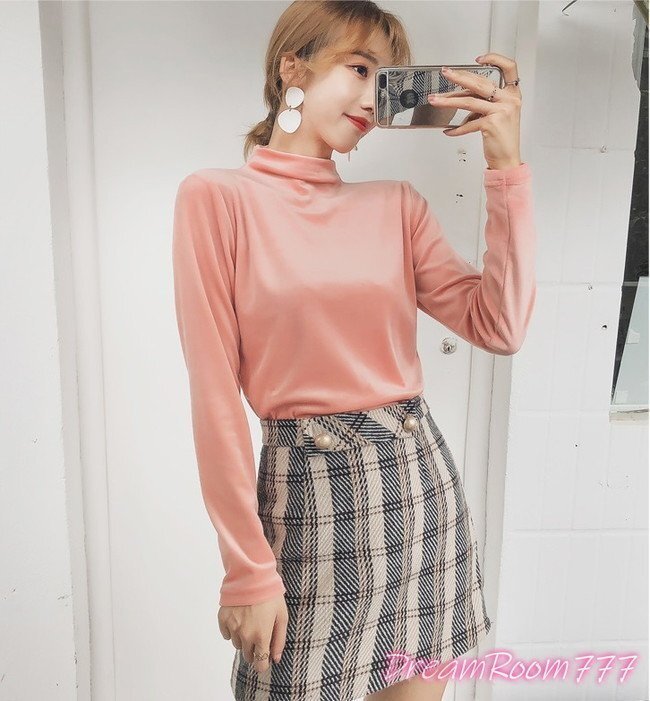 良質とろみベロア素材 ハイネックカットソー 3Lサイズ 美ライン 長袖 レディース タートルネック ロンT 無地 綺麗め K-091-2ピンク