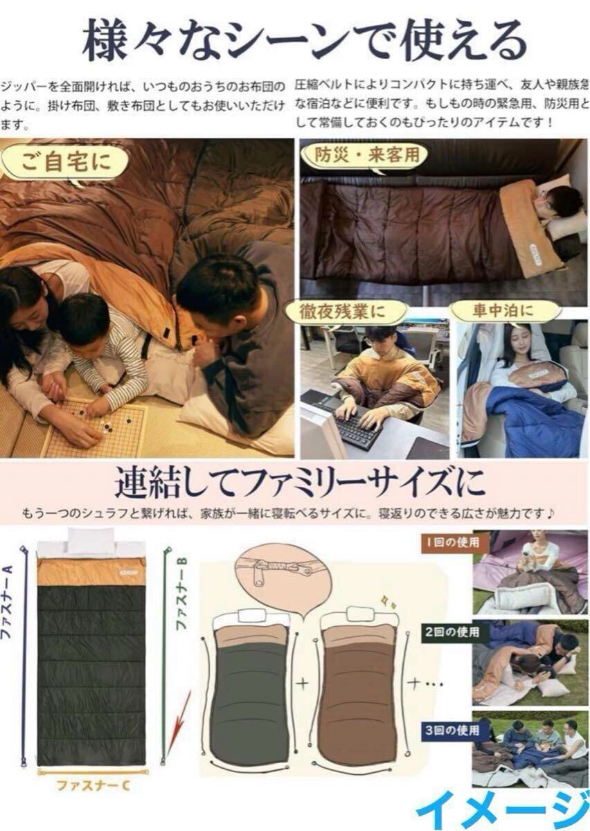 【各場合で適用&収納が便利】 この寝袋は封筒型なので、自宅で広げて敷き布団、掛け布団、レジャーシートなどにもご利用頂けます。残業、車中泊、アウトドア、キャンプ、フィッシング、ツーリング、登山、防災、天体観測など様々な場合に大活躍です!冬季の長期停電と極寒の気象条件にも対応できます。