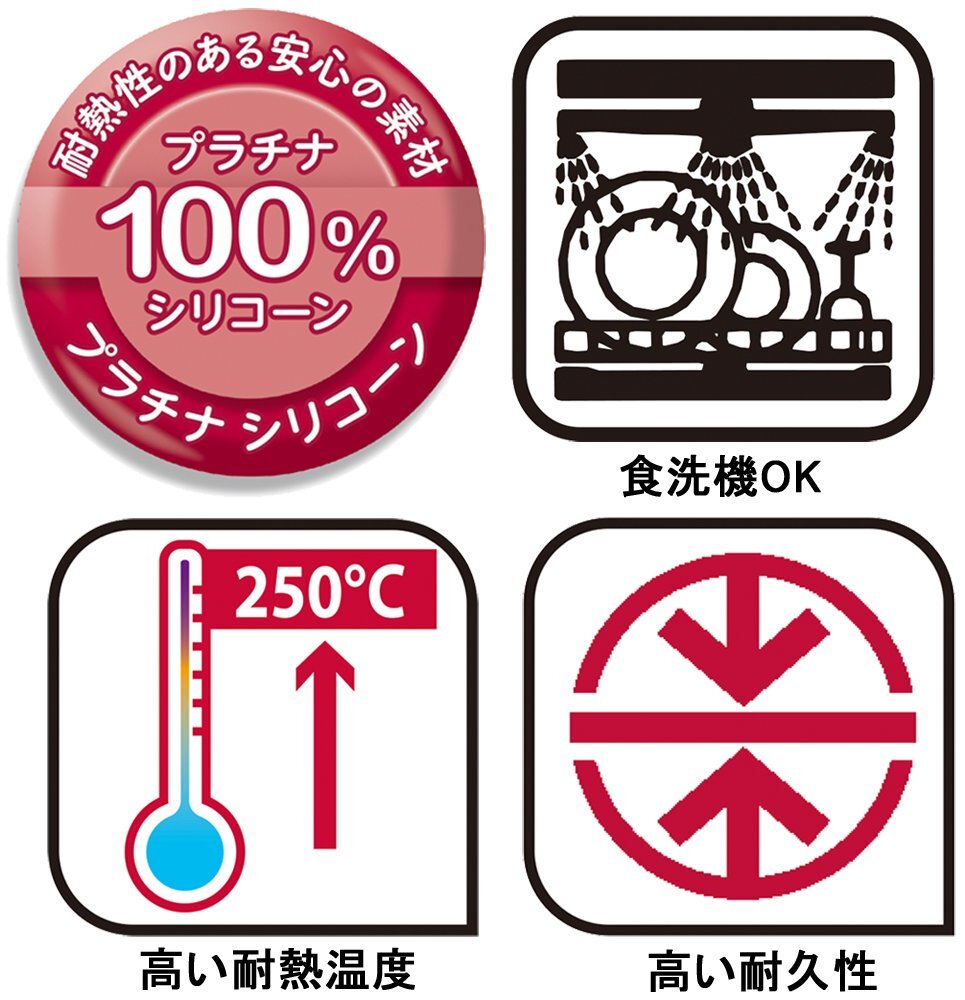 【こだわりの素材 「プラチナシリコーン」】 従来のシリコーンにくらべ高い耐熱性 高い耐久性。毎日の使用にも、欠けにくいプレミアム品質。食洗機OK 鍋やフライパンを傷付けない 【優れたデザイン性とデュアルフィニッシュ】 料理するのが楽しくなるような華やかな色と、光沢とマットの2種類のデュアルフィニッシュで、高級感のある仕上がりに 【BPAフリー】 有害物質BPAを含まない 【フライ返し(ターナー)/食材を炒める、返す】 崩さずに返しやすく、耐熱性が高いので炒め物や長時間の調理にも