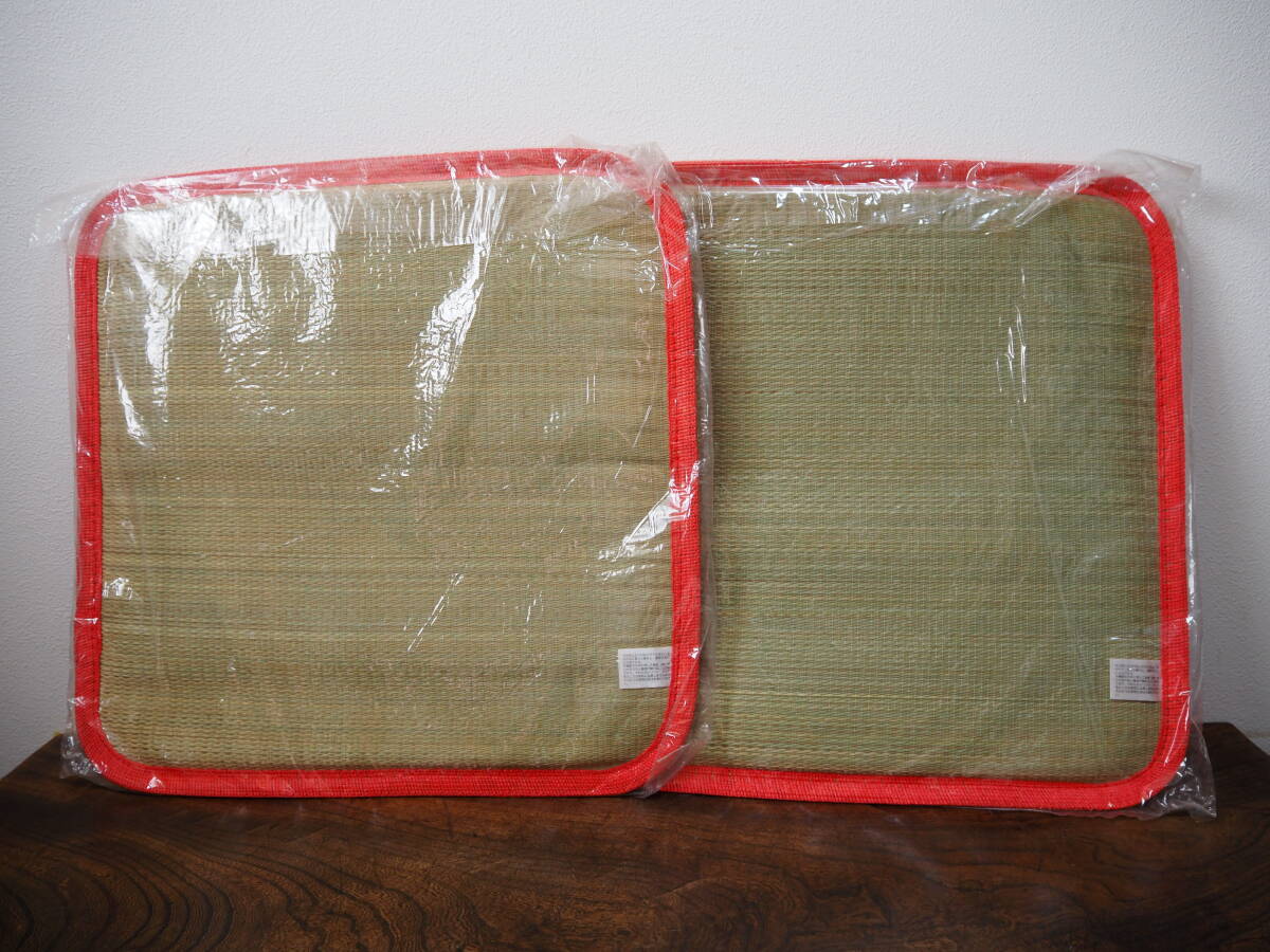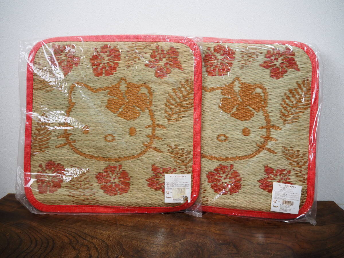 SANRIO サンリオ ハローキティ HELLO KITTY 天然い草座布団 42cm×42cm 2枚 2002年◆平成レトロ クッション 日本製 市販品 当時物