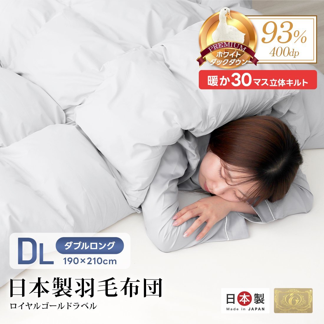 | 日本羽毛製品協同組合より、最高級の素材と縫製技術の証「ロイヤルゴールドラベル」の認定を得た安心・高品質の日本製 羽毛布団です。 \ふっくら、清潔で高品質の羽毛/ ■ホワイトダックダウン93% ■業界高水準の洗浄度1000mm ■ダウンパワー400dp以上 ■国内パワーアップ加工 \側生地にもこだわりポイント/ ■30マス立体キルト加工で暖かさ抜群! ■保温力に優れた超軽量生地「TTC」で、ふんわり軽やかな掛け心地 ■やわらかく、なめらかな肌触りのピーチスキン加工 ■羽毛の飛び出しを防ぐ、二重縫製&ダウンプルーフ加工 ■布団とカバーをしっかり固定する便利なカバーループ付き \安心の抗菌・防臭・防ダニ加工済/ ■SEKマーク取得 ■オゾンクリーン加工 【商品詳細】 カラー:グレー(無地) サイズ:(約)幅190cm×長さ210cm(ダブルサイズ) 重量:(約)2.4kg 充填量:(約)1.3kg 素材:(側地)ポリエステル85%、綿15% (詰物)ホワイトダックダウン93%、フェザー7% (羽毛ふとん 羽毛 掛布団 かけ布団 毛布 あったか寝具 冬寝具 冬布団 ダウン ホワイトダックダウン 高品質 暖か 秋 冬 防寒 人気 おすすめ WEIMALL) |