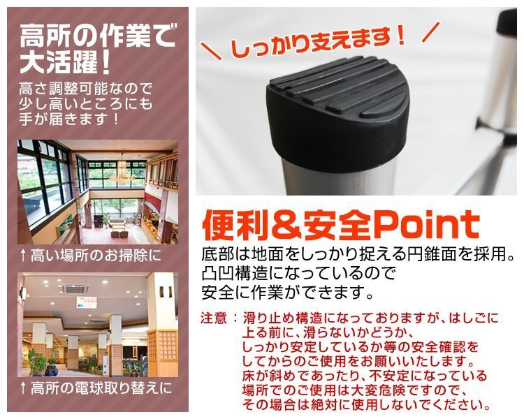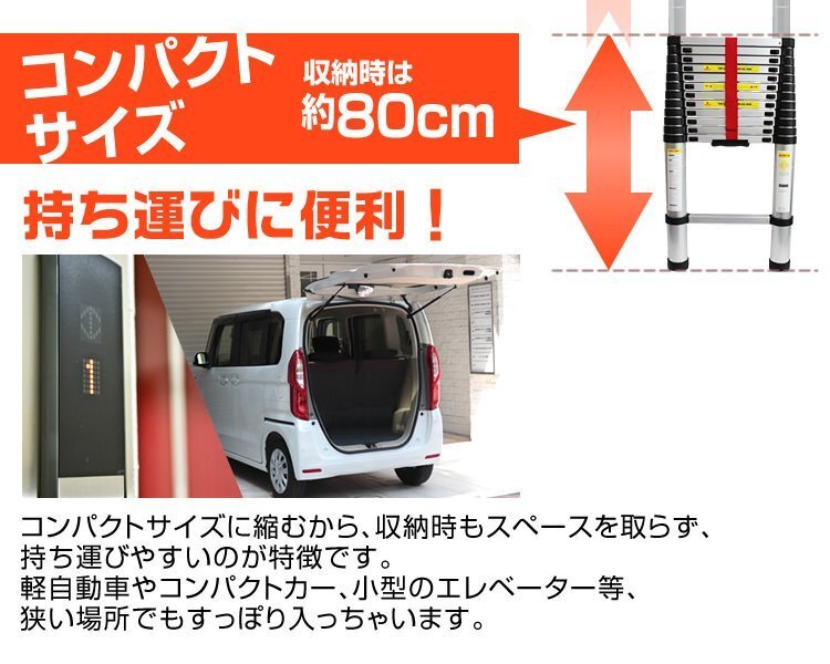 | 大人気アルミ製スーパーラダー新型ついに登場! 伸縮自在! 使用時には段階毎に引き伸ばし、必要な高さでロックできます。 コンパクトで持ち運び楽々。乗用車のトランクにもすっぽり入ります。 庭のお手入れ、高所作業に大活躍 底部は地面をしっかり捉える円すい面を採用 段落ちしない安全ロック付。1段ごとに必要な高さに調節可能。 仕 様 全長(約)373cm~80cm 全幅(約)48.5cm 奥行(約)8.5cm 製品質量(約)11kg 階段:13階段 最大積載重さ(約):150kg 素材 : アルミ ※写真と実物は多少異なる場合がございます。あらかじめご了承下さい。 |