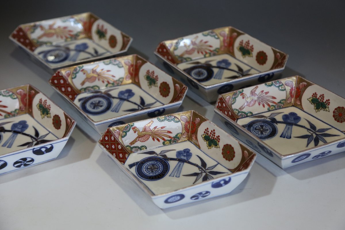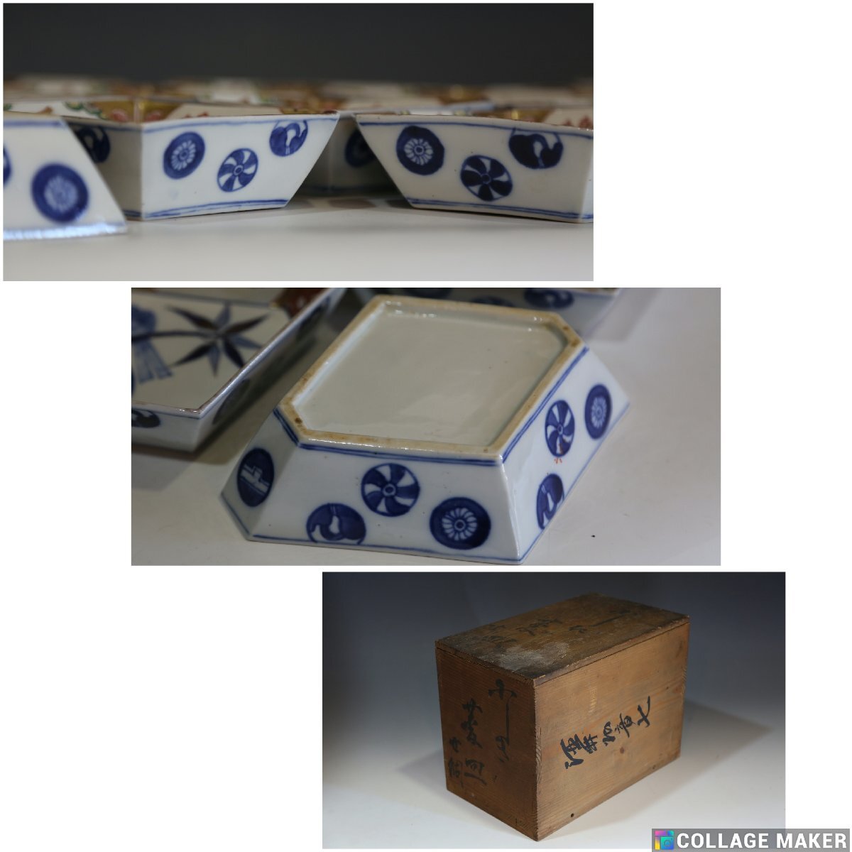 ★★★ 明治期 鳳凰に桐 色絵 菱型皿 20客 ★★★ 73
