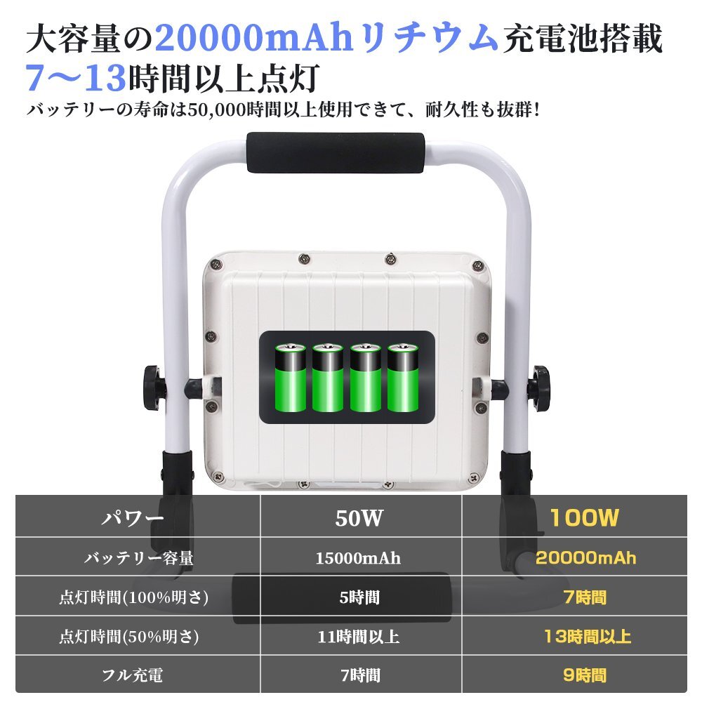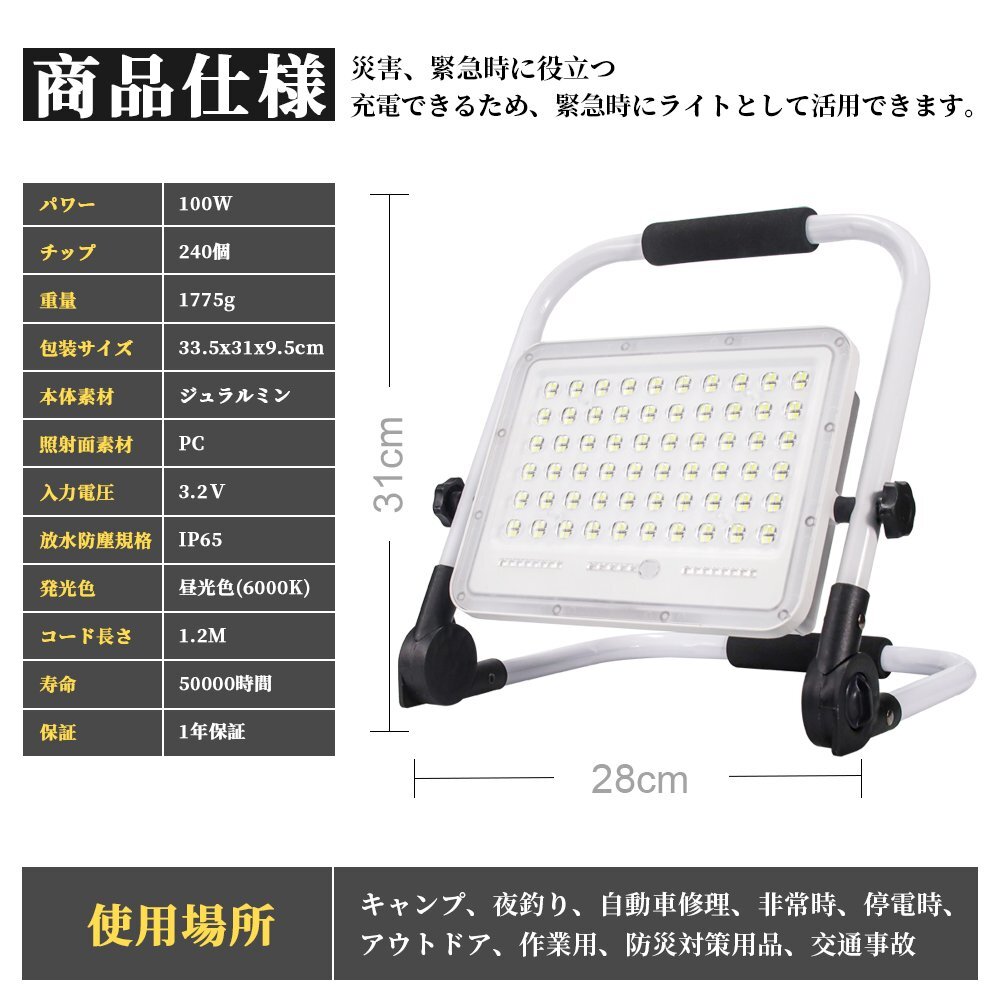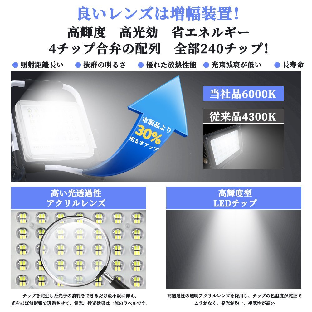 ◆240個高輝度LEDチップ&85RA高演色高透過性: 240個高品質SMD LEDチップを4チップ合併の配列で従来のハロゲンランプより明るさを保ちながら省エネです。投光器 充電式は最大7200ルーメンに達し、かなり強力で、6000K色温度と85RA高演色性に加えて発光効果はより均一と安定、物の色をより完璧に復元でき、ごニーズによって様々の場所で活躍できます。高い光透過性レンズの設計により、光子の消耗を最低限にすることができ、集光と投光の効果を高める。 ◆大容量電池で長時間点灯&耐久抜群: 20000mAhの大容量バッテリーが内蔵され、連続的な点灯の時間は大幅に延長し、50%の明るさは11時間以上点灯でき、100%の明るさは5時間以上点灯できます。LED投光器 はUSB充電とても便利です。高品質のバッテリーとLEDチップを採用しており、放電時間と照明時間も50000時間以上使用でき、耐久性はとても抜群です! ◆5つ点灯モード&2段階調光&180°調整可能: 投光器は5つの点灯モードがあり、明るさも2段階調光できます。電源スイッチボタンを押すだけで簡単に点灯モードと明るさを切り替えできます。SOSモードは下の6個ledチップが赤と青の点滅で非常に目立つため、万が一、緊急事態でSOS信号を発信できます。投光器のスタンドは150°、ライト本体は180°に回転でき、お好きにライトの照明角度を調整できます。 ◆全アルミ材質&IP65防水防塵: 全体はアルミ合金を採用され、強い耐久性で錆も出ないし、放熱性が優れるし、長く使用しても問題ありません。IP65防水防塵を対応し、室内外問わず使えるライトです。耐寒性、耐熱性と防水性も優れたので、雨、雪、暑さ、または台風などの悪天候でも投光器が点灯できることが保証されます。滑り止め取っ手と折りたたみ式灯体のデザインがあり、手持ち使用や収納にもとても便利です。 ◆幅広い使用: テント内の照明、夜釣り、バーベキュー、車中泊、日常使用、常備灯、地震対策、停電、アウトドア、キャンプライト、登山、防犯 、散歩、非常時、緊急時対応に備えあれば憂いありません。作業などの必需品としてお勧め、どこでも携帯する心強い宝物になっています 【保証】 ◆当商品は12っヶ月保証となります。 ◆お届けから1週間以内にご連絡のあった不良品の保証対応の送料は当方が負担いたします。 ◆保証期間内の不良品ですが、交換のみ対応しております。往復送料はお客様負担となります。在庫がない時だけ返金しますので、ご了承ください。 |