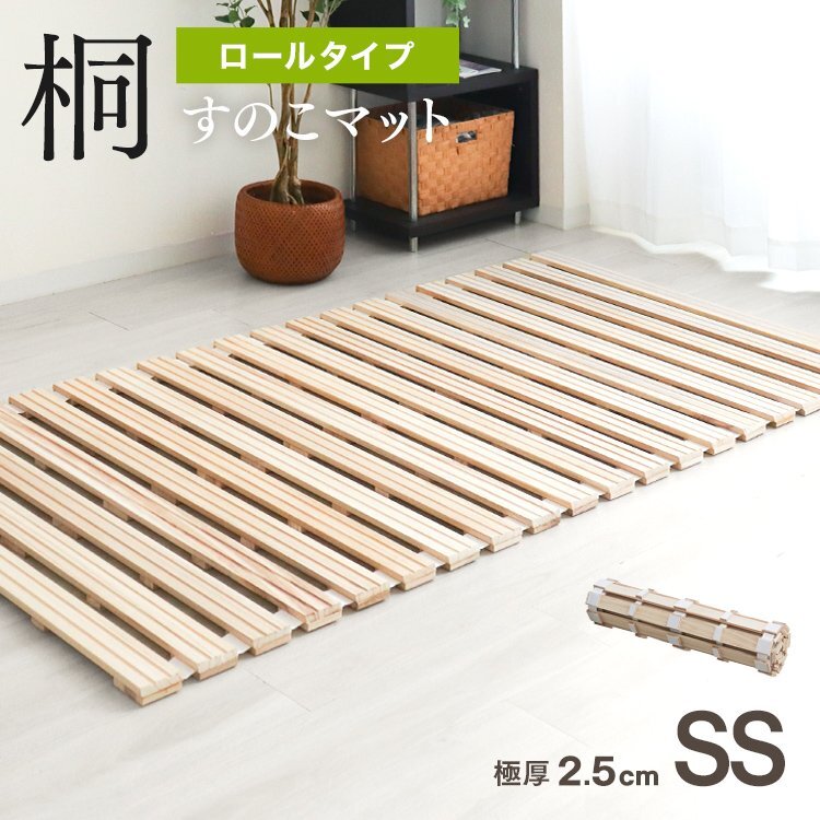 通気性抜群で湿気を抑制します。 風を通しやすい極厚2.5cm。 床からの高さを設けることで通気性を高めています。 ロール式なので、使わないときはコンパクトに収納できます! 付属のマジックテープでくるっと巻いて固定します。 天然の桐材を使用。抗菌・防虫・防腐効果があります。 桐は、断熱性と保温性に優れ、寝具を床の冷たさから守ります。 安全性を考慮してマットの角には面取り加工が施されています。 さらに床の傷つきを防ぐためのクッション材付き!。 家族みんなで安心して使えます。 【商品仕様】 カラー:ナチュラル サイズ:(約)幅120×奥行き200×高さ2.5cm すのこ厚:(約)2.5cm すのこ幅:(約)7cm すのこ間隔:(約)3.4cm 重量:(約)8kg(1ロール 4kg) 素材:天然木(桐材)、EVA 他 【注意事項】 ・すのこの上に立つ場合はさん木の上に足をかけるなど強度の弱い部分に体重がかからないようにご注意ください。 ・飛び跳ねたり、一点に荷重をかけたりすると割れる恐れがあります。 ・製造時期によっては若干色味が異なる場合があります。 ・商品は、モニターによって色合いが異なって見える場合があります。 ・仕様・デザインは改良のため予告なく変更することがあります。 |