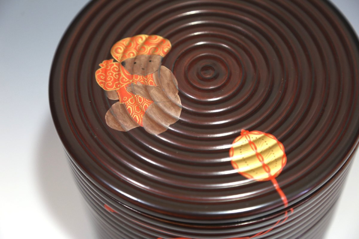 ★★★ 木製 アンティーク 御所人形図 三段重箱 ★★★