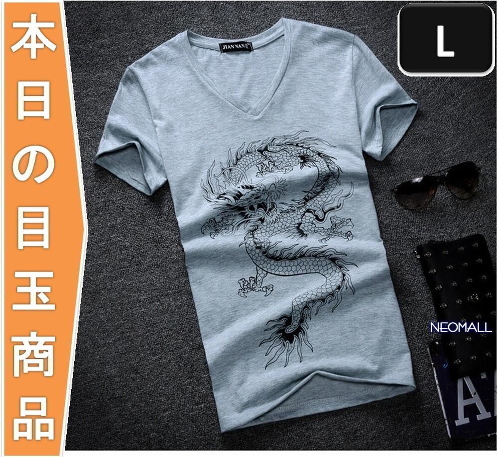 今日の目玉 ☆ 丸首 半袖 Tシャツ【295】グレー Lサイズ トップス お洒落 シンプル 春夏