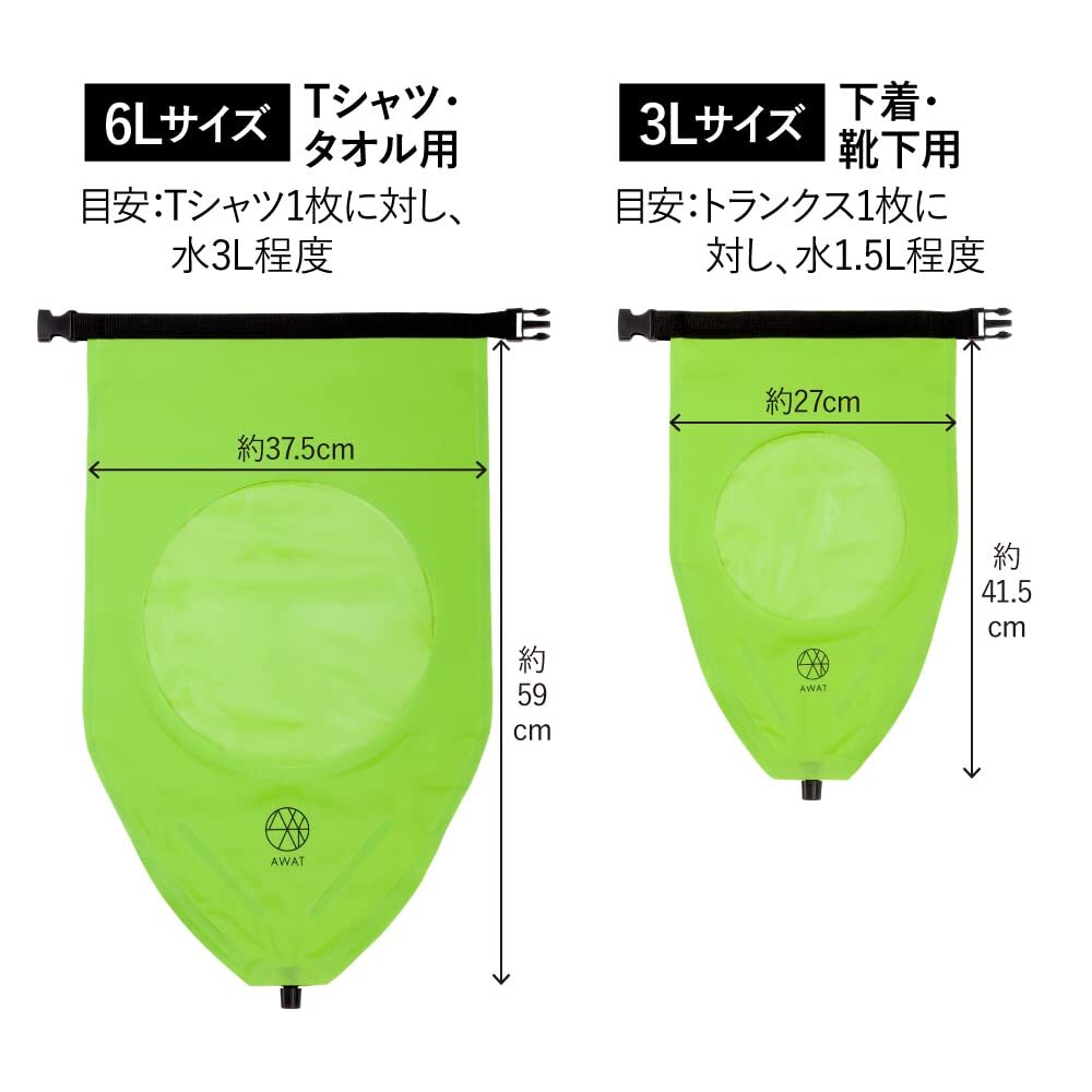 アルファックス AWAT(アワット) シャカシャカウォッシュバッグ 6Lサイズ 洗濯袋 洗濯バッグ 旅行 アウトドア 防災グッズ 37×62cm