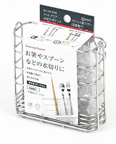 パール金属 ワイヤー水切りポケット 吸着盤付 ステンレス製 アットアクア HB-3942 シルバー