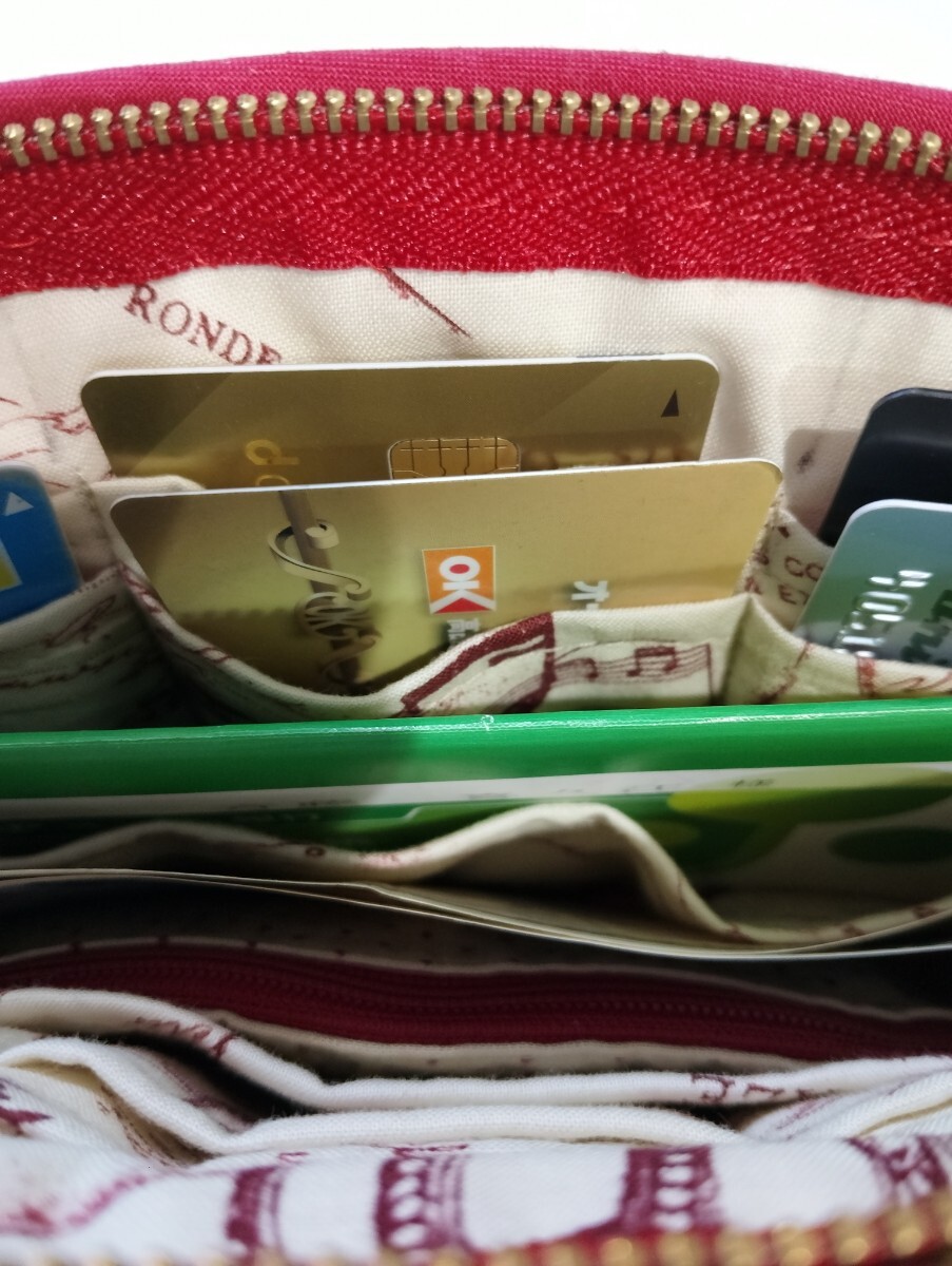 ◯カード12枚、小銭入れ、通帳お札入れ◯布製なのでたっぷり入ります◯サイズ横約22センチ縦約14センチ。