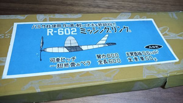 新品未組立 当時物 バルサ R-602 ミッシングリング ASK 模型飛行機 ライトプレーン 可変ピッチ一翅折畳みペラ 木製プロペラ 昭和レトロ