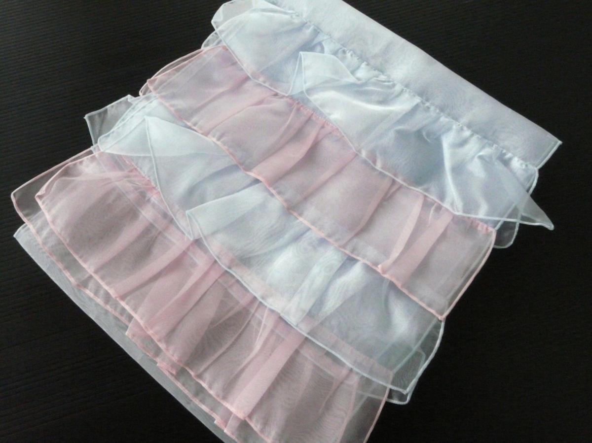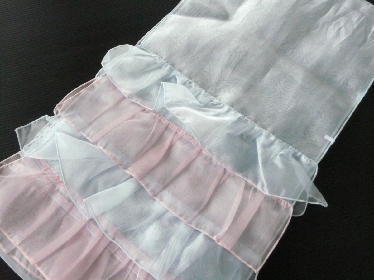 大人の兵児帯 プチ兵児帯 オーガンジー 配色 水色×ピンク フリル 成人式 浴衣 メール便可 717