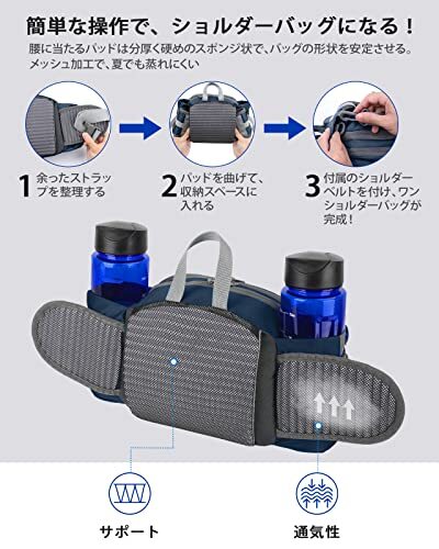 ネイビーブルー WATERFLY(ウォーターフライ) ウエストバッグ ウェストポーチ ワンショルダーバッグ 水筒ポーチ付き 多機能