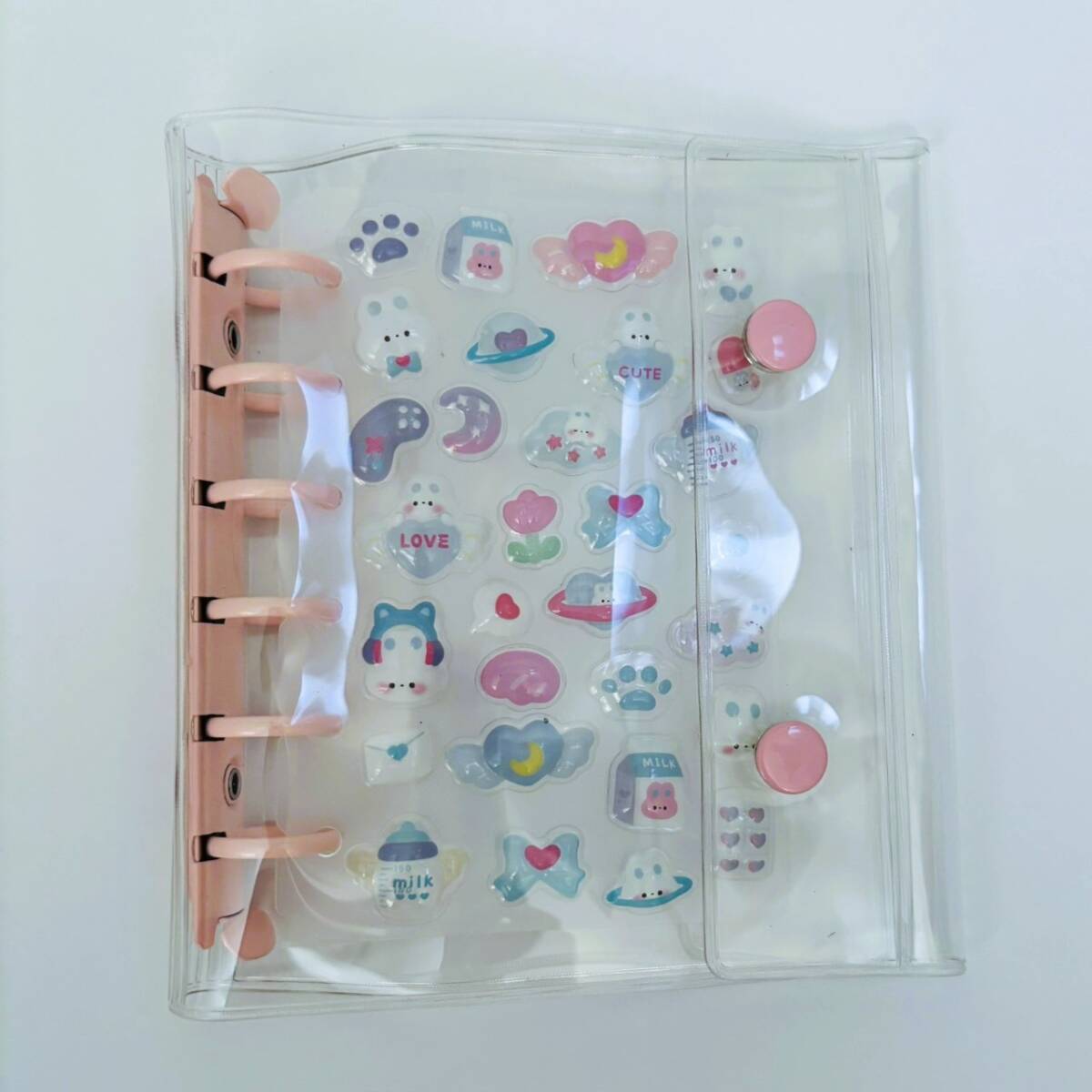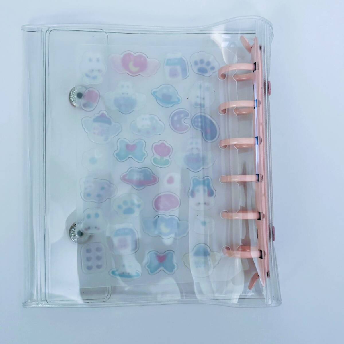 A7サイズ ミニ6穴 ダブルボタンのクリアバインダー&シール台紙リフィル20枚セット★