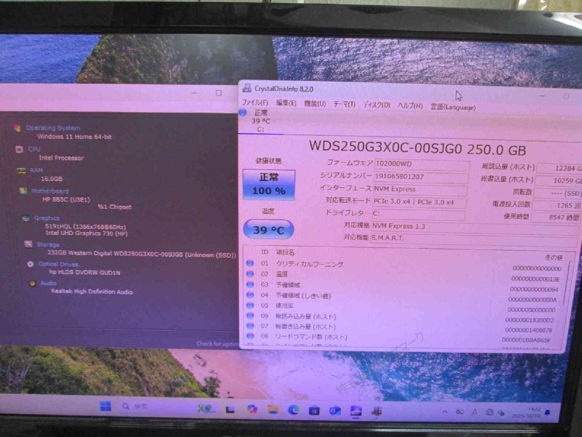 | 記憶媒体(HDD等) | 250GB(M.2 SSD) |