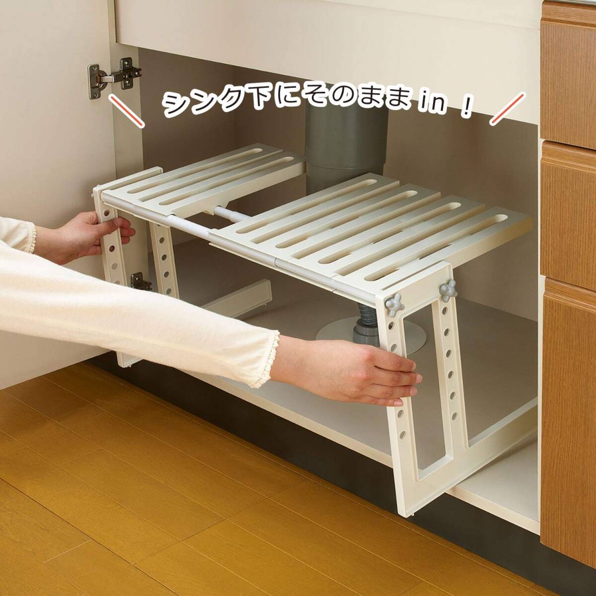 Belca キッチン 日本製 収納 そのままin シンク下フリーラック1段 伸縮タイプ 幅50~75×奥行30.3×高さ30.9cm ホワイト