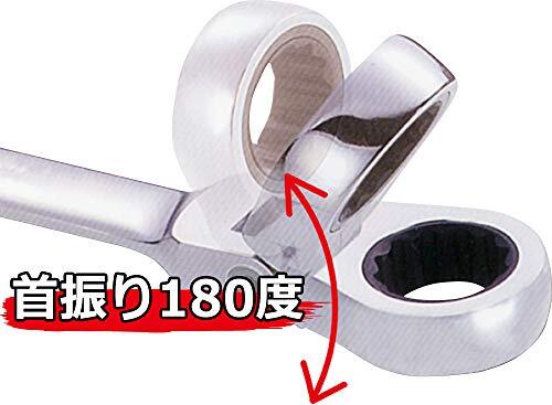 商品紹介 細やかな動きで、より狭い場所での作業が可能 【用途】 六角ボルト・ナットの締付け、緩め作業 【特徴】 ・レンチの振り幅の制限されたより狭い場所でも作業性抜群 ・首振り機構は0~180度の任意の角度に設定でき、障害物を避けての作業が可能 ・本締めが可能 【注意事項】 ※ボルト、ナットのサイズに合ったものを使用し斜掛けや浅掛けはおやめ下さい。 ※ハンマー等で叩いて衝撃を与えないで下さい。 ※本来の目的、用途以外での使用はしないで下さい。 より ●ギア付で作業がしやすい ●首振りタイプ