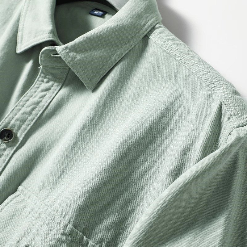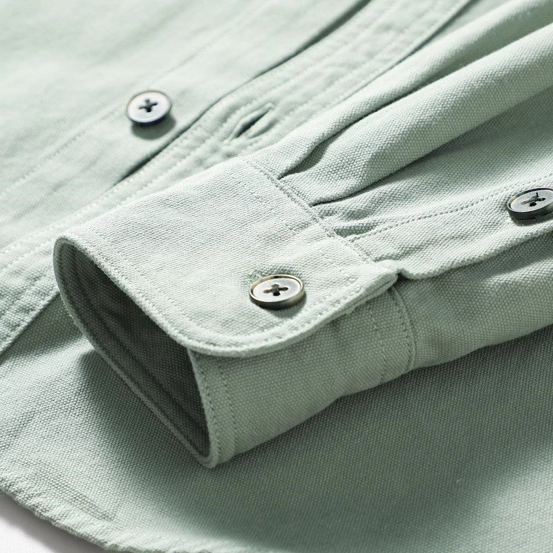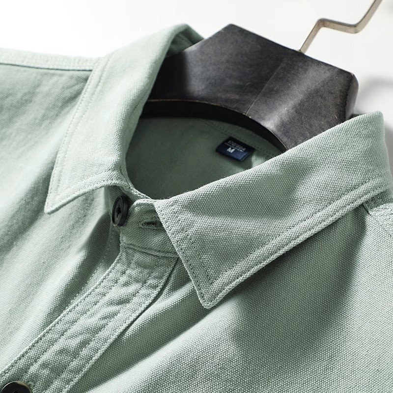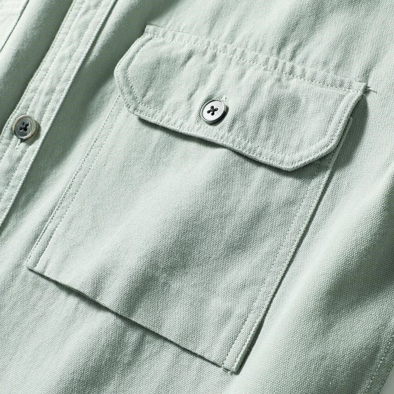 欧米スタイル 国内未販売 新品 メンズ長袖シャツ カーゴ ポケット ウォッシュドコットン 春秋 ゆったり 日常 カジュアル /緑色T6023-L
