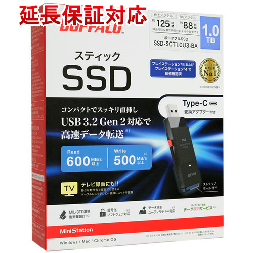 | BUFFALO スティック型外付けSSD SSD-SCT1.0U3-BA 1TB ブラック | |
