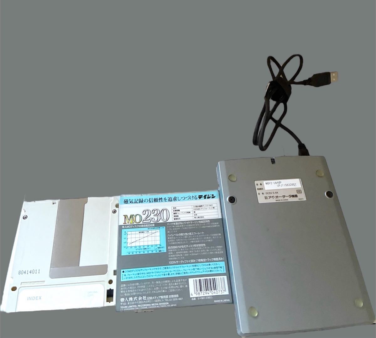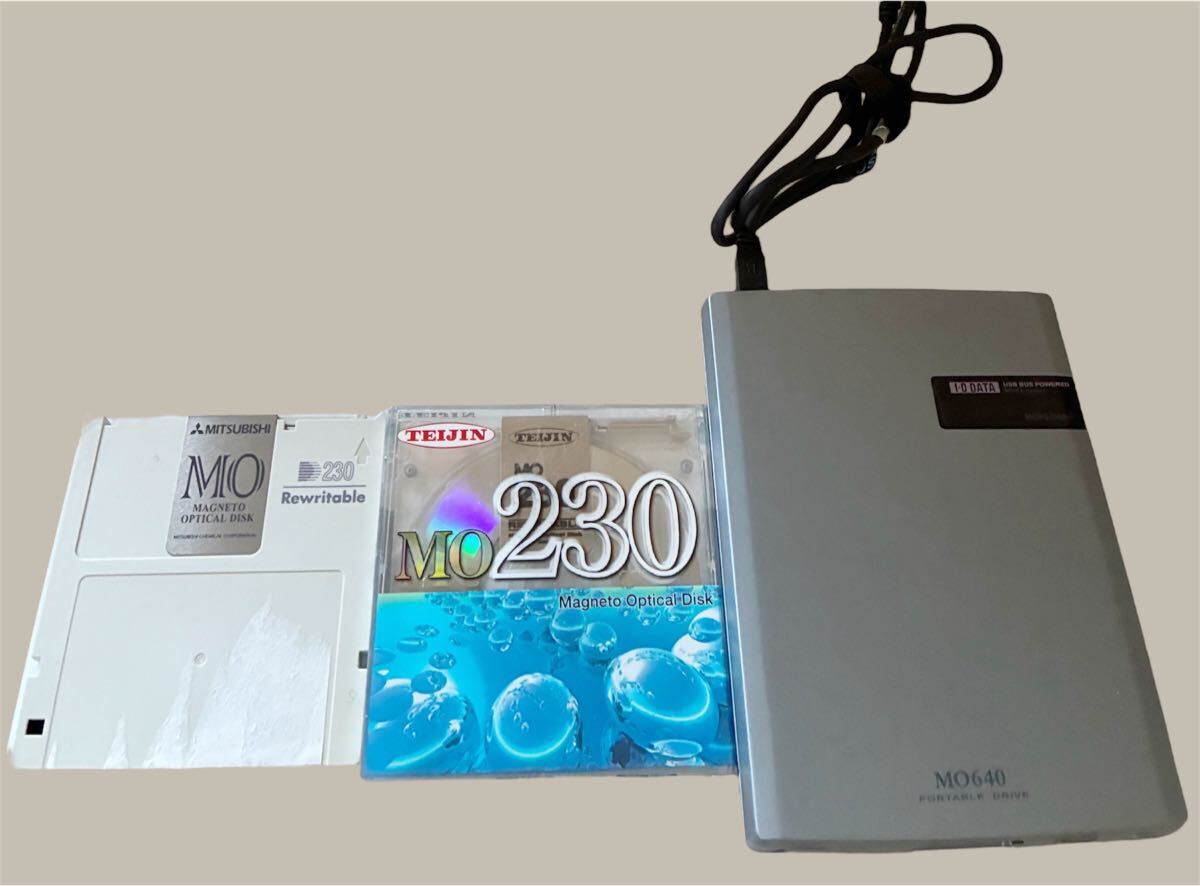 未使用230MBのMO 1つとフォーマットした中古を1つおつけします。写真に写っているもののみです。