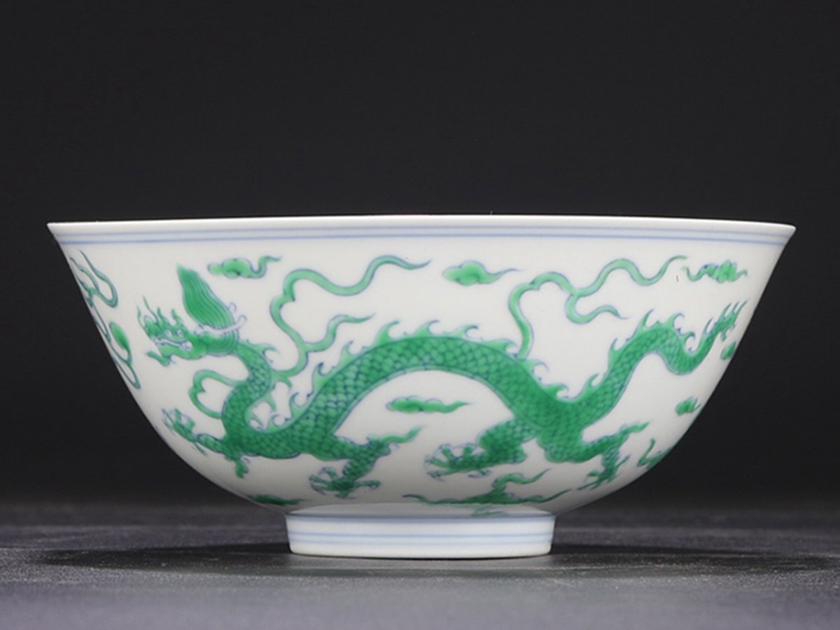 【安】明時代 大明成化年製 緑彩雲龍紋宮碗 共箱 唐瓷 古陶瓷 中国古美術 古董品 286 サイズ(約寸) |