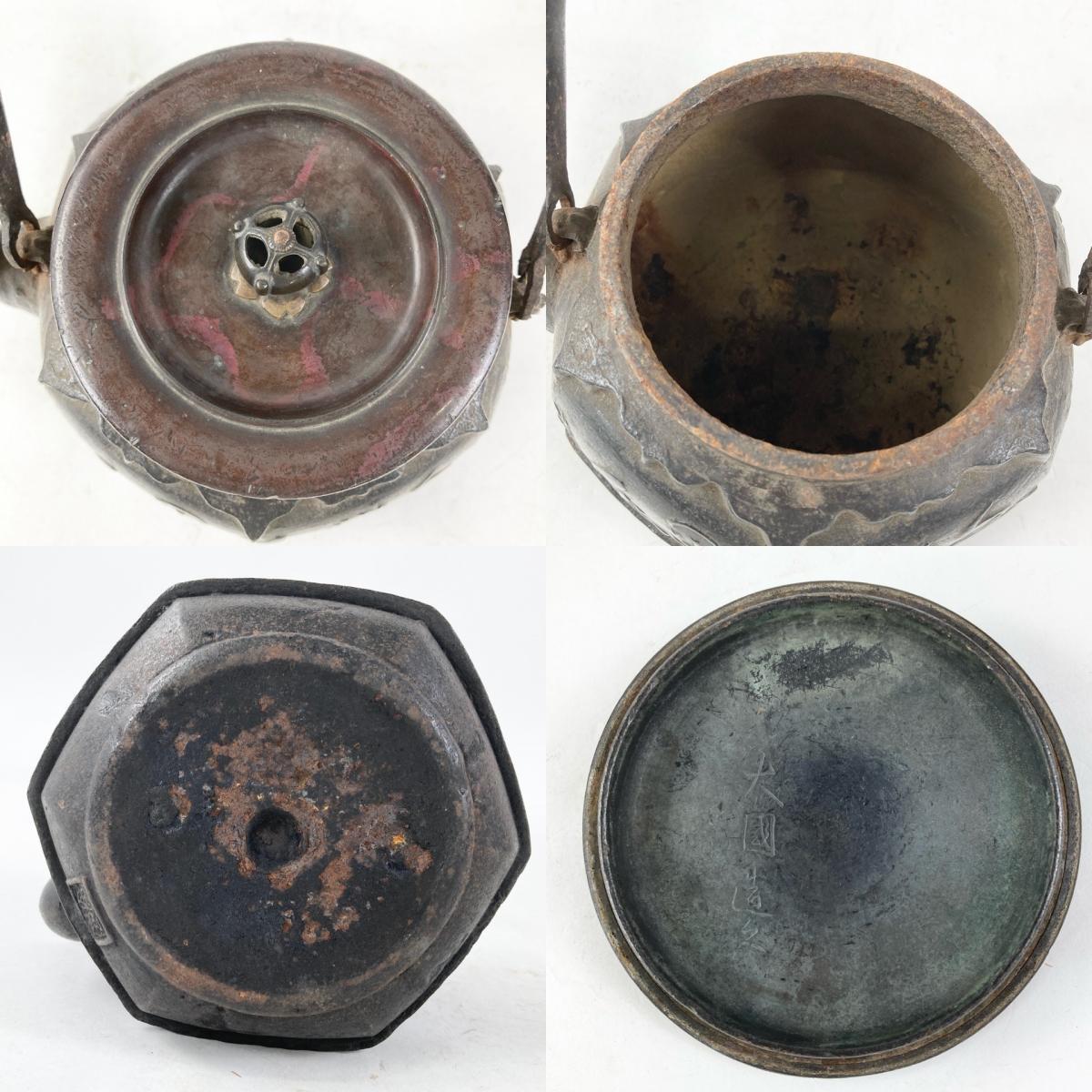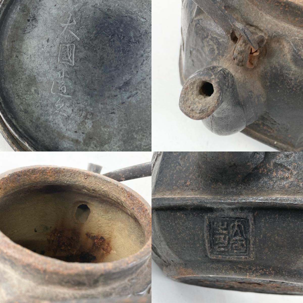| 商品説明 | 本品は、時代物 大國造 作の 象嵌鉄瓶 でございます。 持ち手に象嵌が施され、胴銘および蓋裏銘を有する格調高い煎茶器です。 鉄瓶としての実用はもちろん、骨董・古美術としても価値ある逸品です。 |