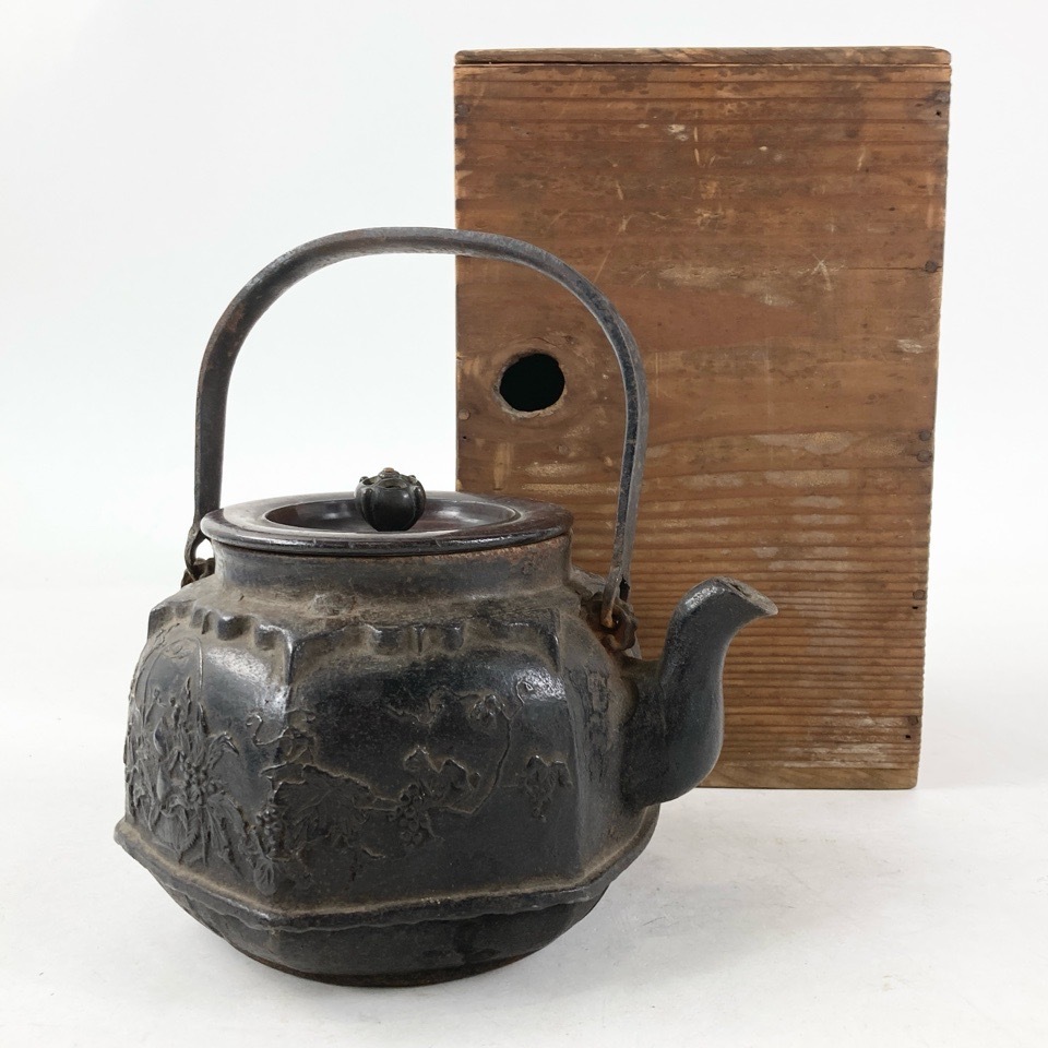 | 商品名 | 時代 名人 大國造 象嵌鉄瓶 持ち手象嵌 胴銘 蓋裏銘 箱付 煎茶器 骨董 古美術 茶道具 4130430 |
