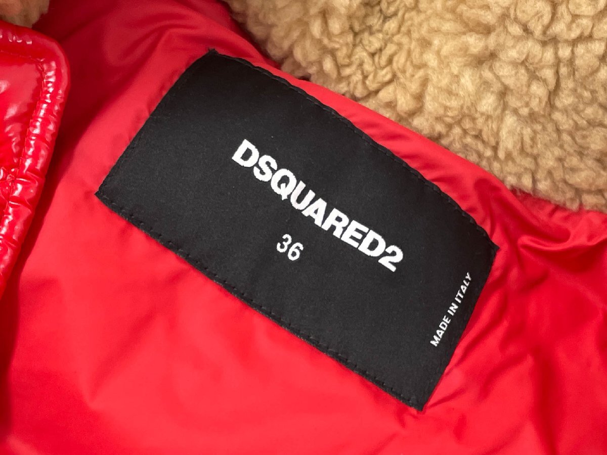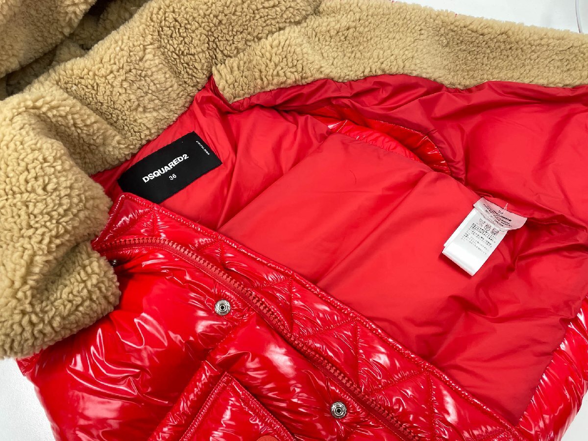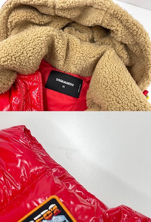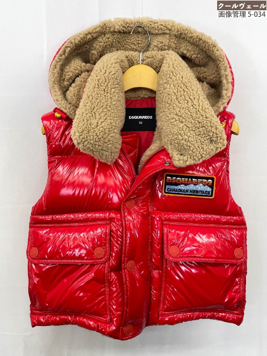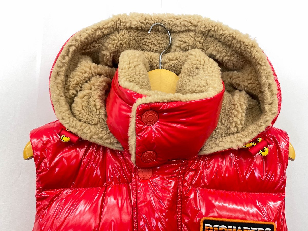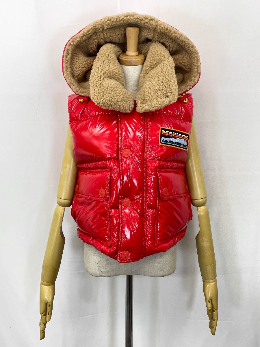 超美品【ディースクエアード】S75FB0165 D35091 ボア フード付ダウンベスト ジレ Upright Neck Down Vest (レディース)36 赤◇17LB2023◇