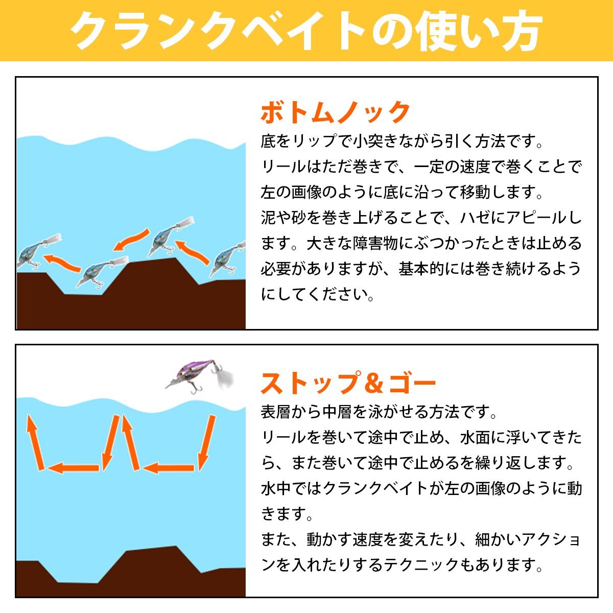 クランクベイトはリールを巻くと、頭の方から底に潜っていきます。