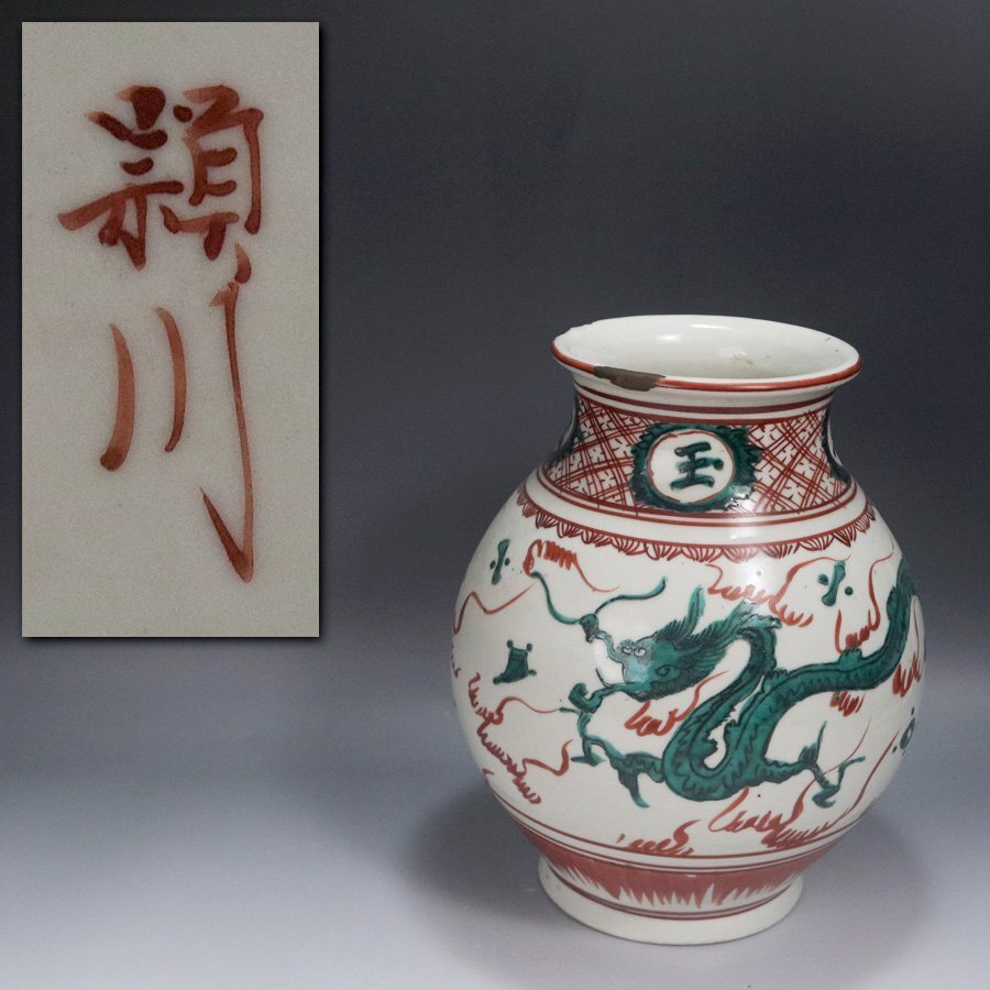 ■商品説明 江戸期に製作された、 奥田頴川 造 呉須赤絵 雲龍紋 時代瓶・花生。 呉須赤絵の発色の美しさ・圧倒的な存在感が印象的な作品です。 《 奥田頴川(おくだ えいせん) 》 1753年~1811年 江戸時代中期~後期の陶工。 京都出身。本姓は穎川。名は庸徳。通称は茂右衛門。別号に陸方山。 宝暦3年生まれ。質屋を営んでいたが,海老屋清兵衛に陶法をまなんで,粟田口に窯をひらいた。 呉須赤絵,古染付,交趾などの写しを手がけた。 京焼磁器の創始者。門弟に青木木米,仁阿弥道八,欽古堂亀祐らの名工がいる。 文化8年4月27日死去。59歳。 ■寸 法 口径約11.0cm・胴径約18.0cm・高さ約22.0cm。 ■状 態 口縁に補修跡が少し見られる程度です。 ■付 属 品 なし。 【即決・送料無料】の表示商品に限り、 一部地域(北海道・沖縄)を除き、送料無料キャンペーンを実施しております。 ご希望の方は、お早めに入札して頂けます様、宜しくお願い致します。 【※※なお、作品に対して疑問や質問がある場合には、※※】 質問欄もしくは、ストア情報に当方の情報が記載されておりますので、こちらをクリックしてお問い合わせ下さい。 宜しくお願い致します。 |
