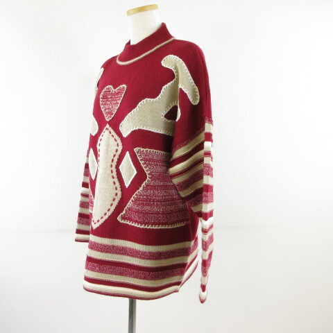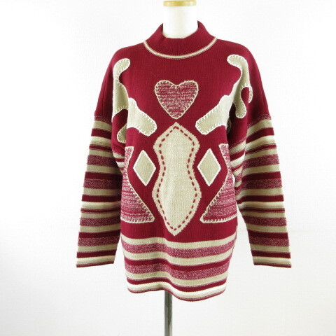 ランセル LANCEL ニット セーター 長袖 赤 M *T781 レディース
