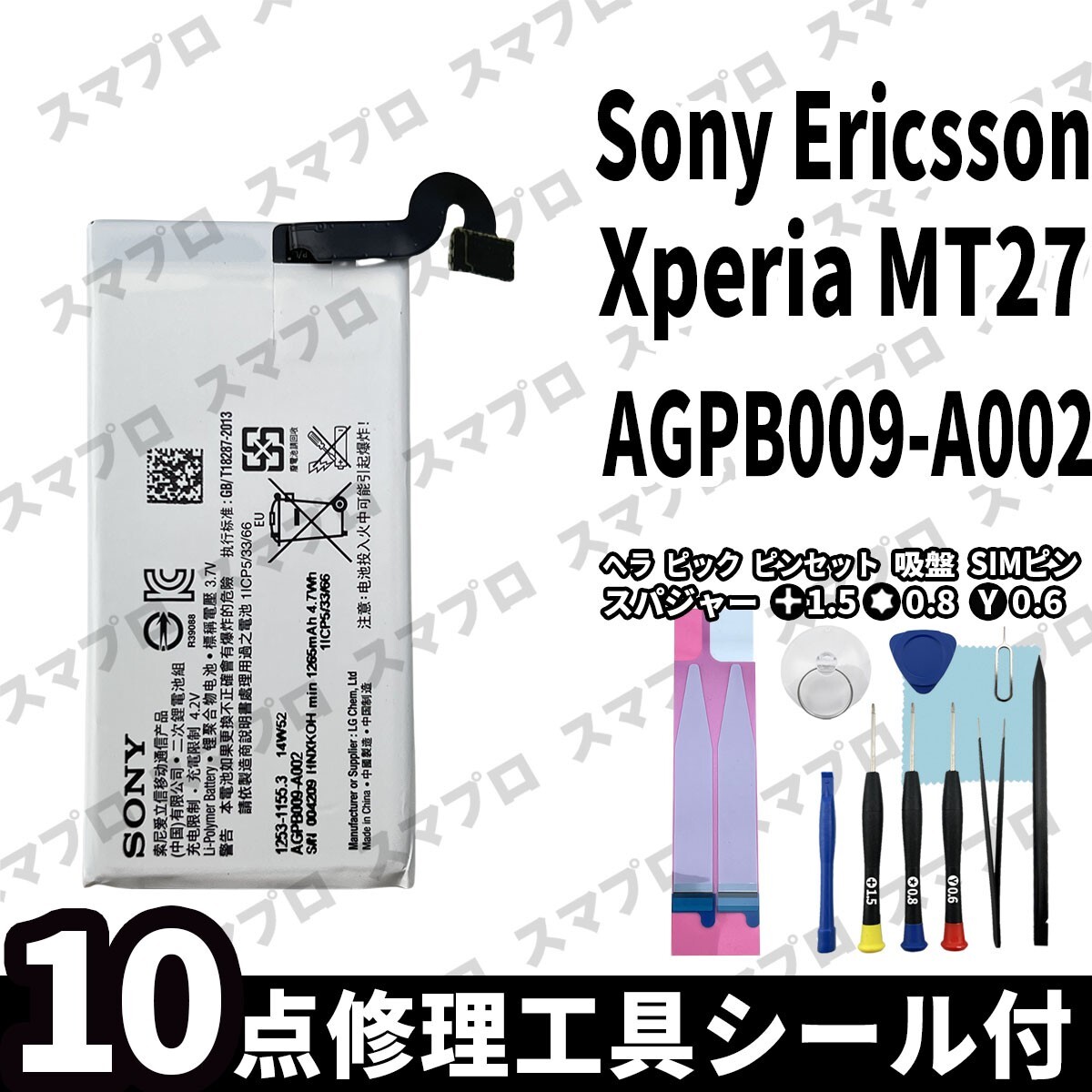 Sony Ericsson Xperia MT27 バッテリー AGPB009-A002 専用 ・バッテリー本体 ・両面テープ ・修理工具セット ※商品画像はイメージとなります。 |