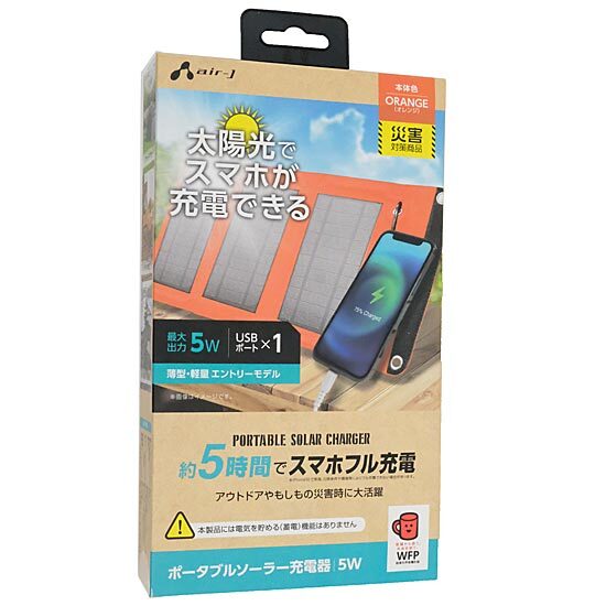 | エアージェイ ポータブルソーラー充電器 AJ-NSOLAR5W OR オレンジ | |