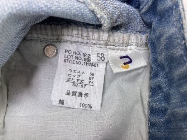 サイズは58-87でウエスト72cm、股上21cm、股下69cm です。