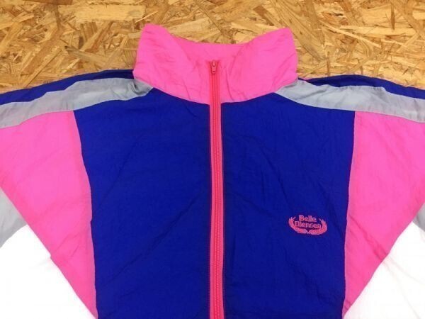 BELLE ELLENSON ベルエレンソン ブルゾン ナイロンジャケット メンズ 大胆切替 ロゴ刺繍 ハイネック オールドレトロスポーツ 古着 ピンクです。