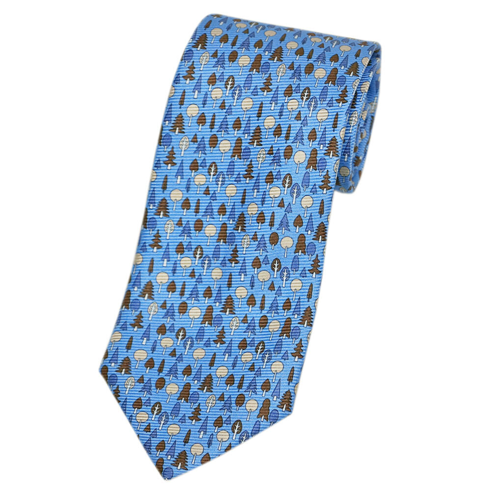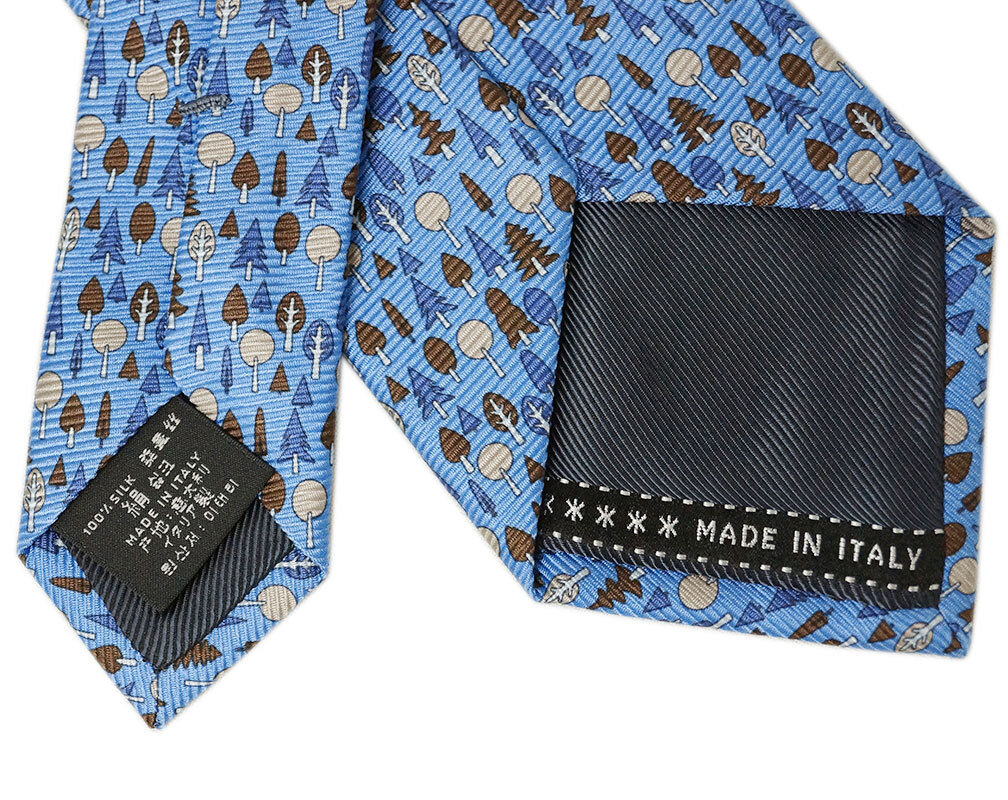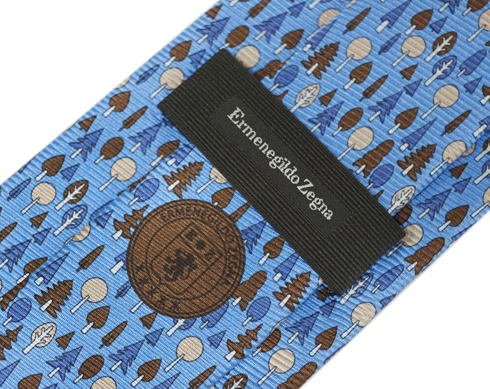 ゼニア ブランド ネクタイ エルメネジルド・ゼニア 高級 シルク 100% ウッド 木 ブルー ブラウン 青 水色