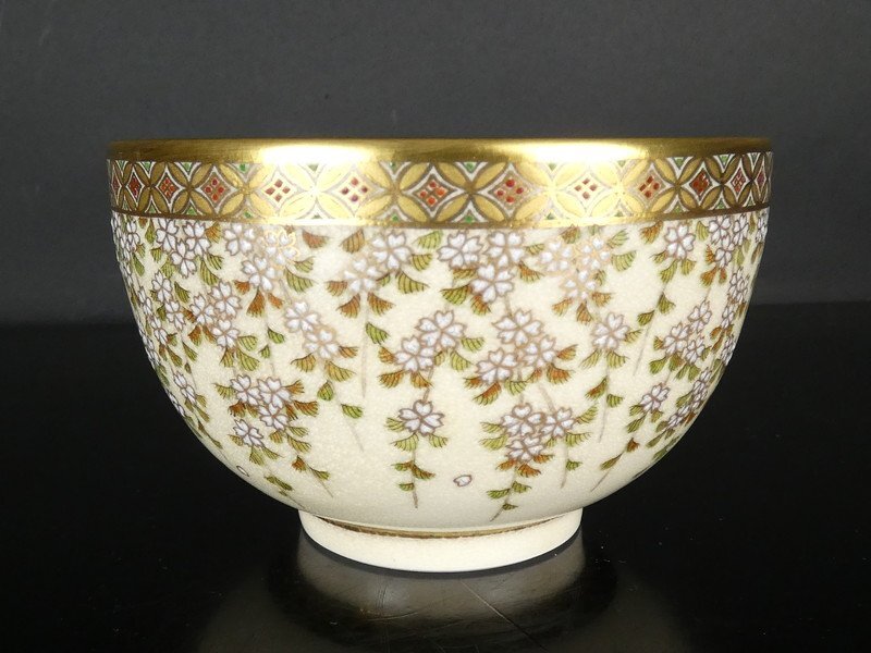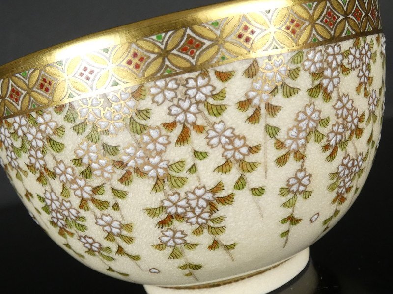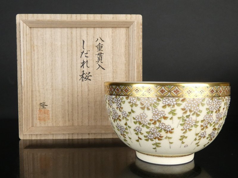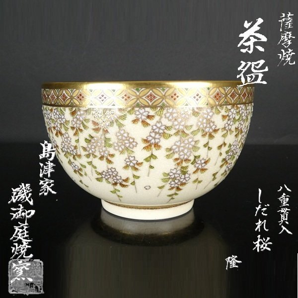 藤崎隆 島津家 磯御庭窯「薩摩焼 八重貫入 しだれ桜 茶碗」共箱
