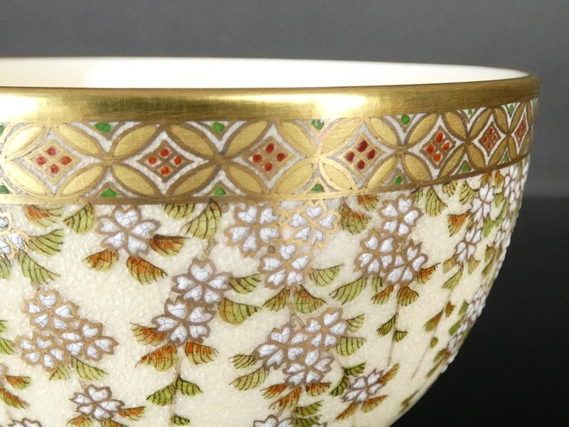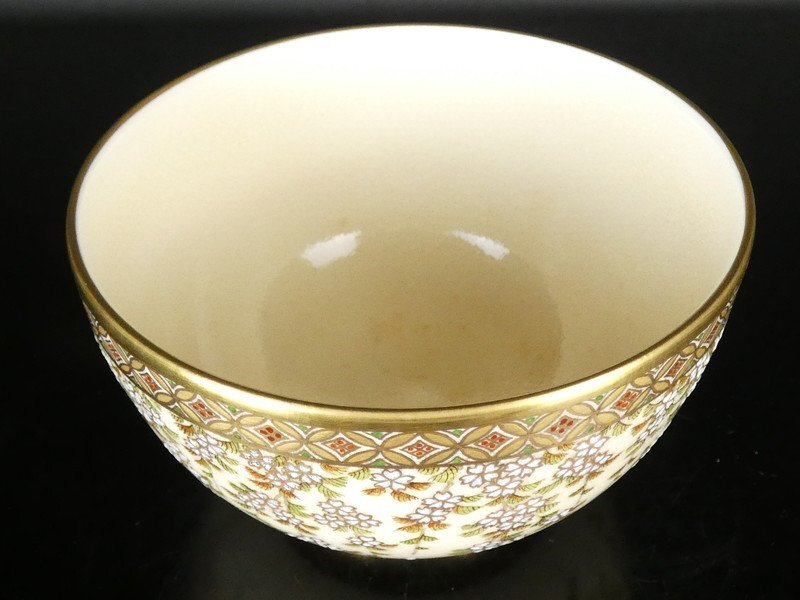 【都屋】藤崎隆「薩摩焼 八重貫入 しだれ桜 茶碗」共箱 幅 約11.5cm 茶道具 1028 a17