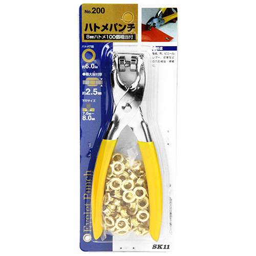 SK11 ハトメパンチ 8mm #200 ハトメ抜き ハトメパンチ 打ち具 工具 手動 ポンチ