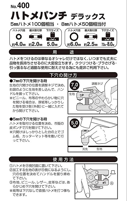 ※サイズの違うハトメパンチも取扱っております。