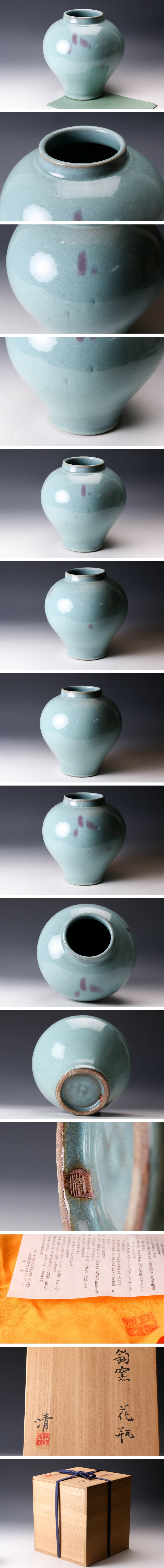 【佳香】人間国宝 原清 鈞窯花瓶 共箱 共布 栞 本物保証